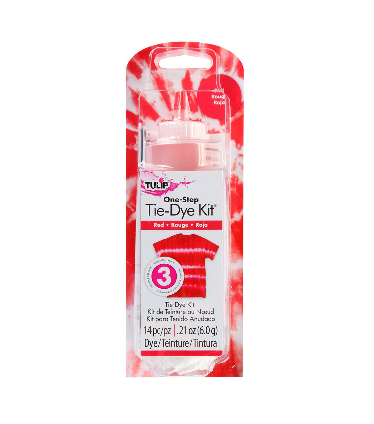 The Tulip One-Step Tie-Dye Kit gives you bold, beautiful color with just the squeeze of a bottle. Containing one vibrant dye color, this kit is ideal for achieving quick and easy allover color or one-color tie-dye effects. The incredible vibrancy, along with colors that stay bold and beautiful through repeated washings makes this die kit everyone's favorite. Its easy-to-use, one-step process eliminates the need to presoak fabrics in soda ash. Simply add water to the dye bottles, shake and apply.
