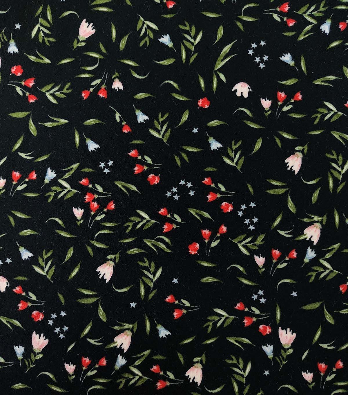 Get Cozy with Tulips on Black Double Brush Jersey Knit Fabric