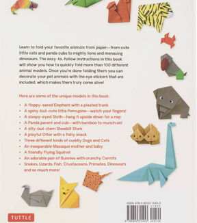 The step-by-step instructions in this book show you how to fold 120 amazing animal origami models. Once you're done folding them, you can decorate your creations with eye stickers to create a truly lifelike collection of creatures.The folded animal projects range from easy to challenging, and each one is clearly labeled with the difficulty level. Start with simple models and move on to the intermediate and challenging animals as your build your origami skills! Author: Fumiaki Shingu. Softcover, 158 pages. Published Year: 2020. ISBN 978-4-8053-1545-3. Imported.