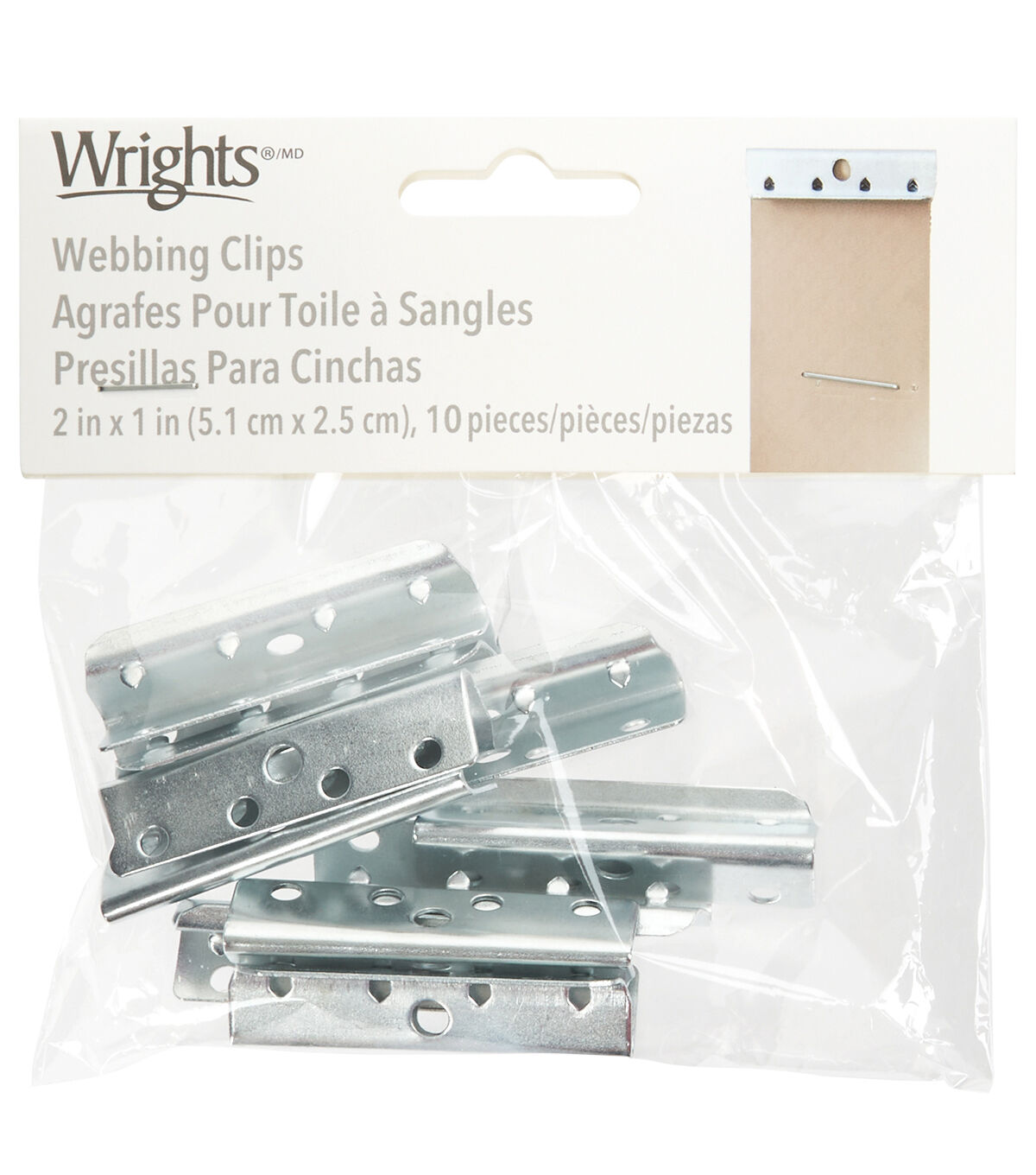 The Wrights Steel Webbing Clips - Silver will be an interesting addition to your upholstery supplies kit. This pack includes 10 rubber webbing clips flaunting a silver finish. It is typically used with rubber webbing but will also work with other material types. You can also use it for replacing webbing on mid-century modern furniture, as they fit into most slots found on furniture from this era.