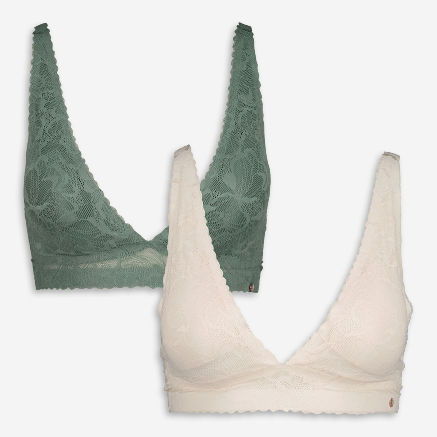 • Two Pack Khaki & Nude Lace Bralettes