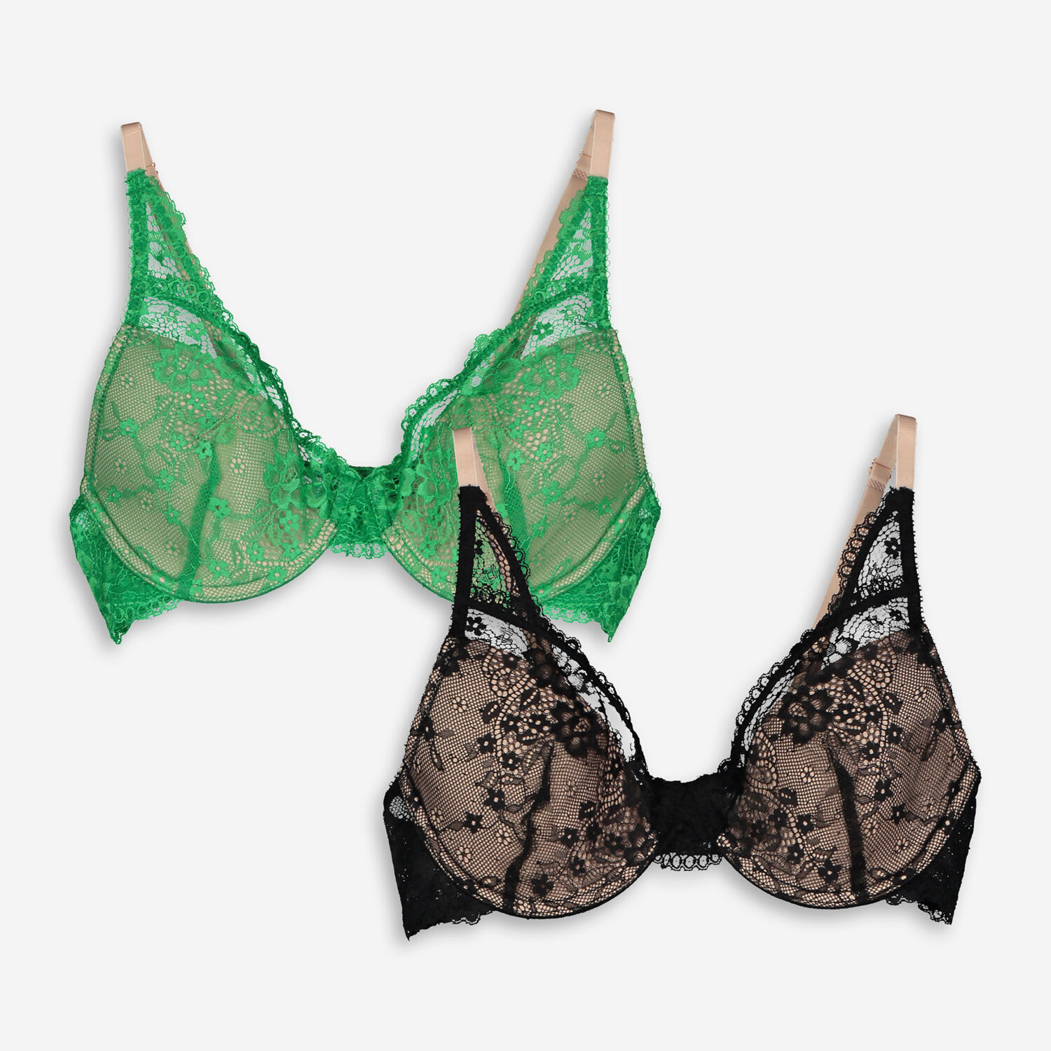 Two Pack Multicoloured Floral Lace Bras