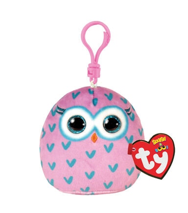 The TY Squish-A-Boos Owl Plush Clip - Pink & Blue will make a delightful addition to your child's beanie boo collection. This cute-looking owl with big button eyes sports a pink shade and a print of tiny motifs in a blue hue. It will make the perfect companion for your little one once you clip it to their backpacks.