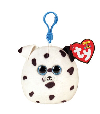 The TY Squish-A-Boos Fetch Dog Plush Clip - White & Black is something that your little dog lover will love to own. It comes with a clip that allows you to attach this white-hued squish toy to your child's school or travel bag. This adorable plush doggie toy sporting a spotted pattern will be their companion wherever they go.