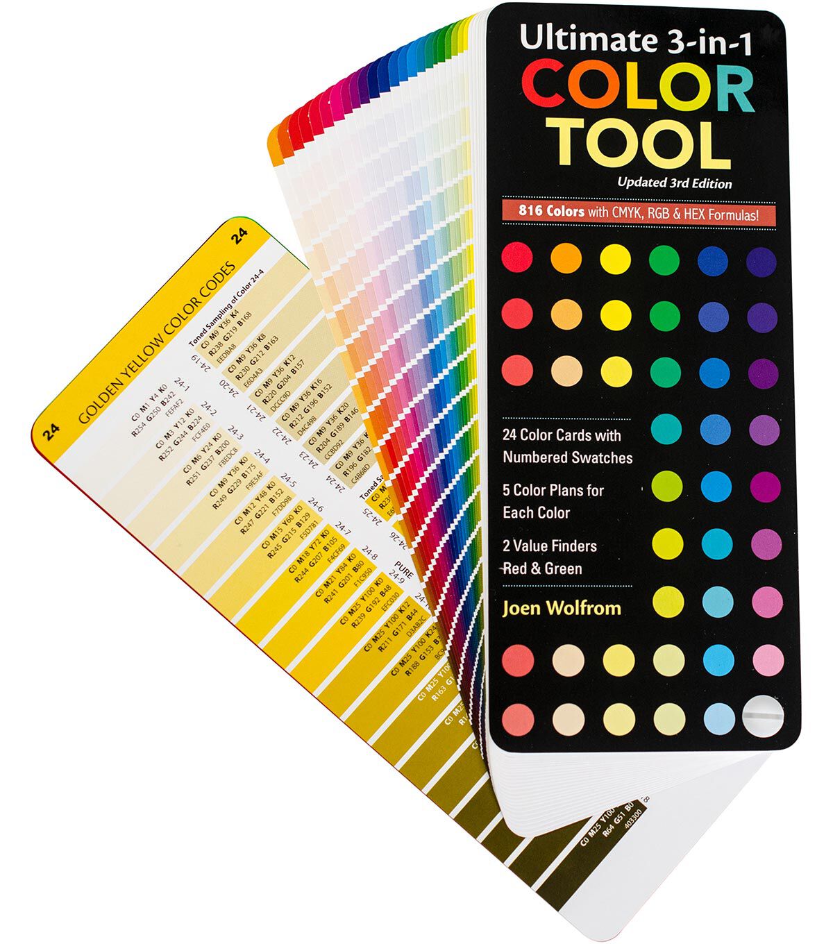 C&T Publishing-Ultimate 3-in-1 Color Tool. It's as easy as 1, 2, 3! One: Start with your desired color card. Two: Choose one of the color scheme options. 3: Find the corresponding companion color cards to create the perfect color combination. Includes CMYK and RGB formulas, plus Hex numbers for website design. Ideal for anyone who uses color in their work: quilters, sewists, needleworkers, artists, crafters, graphic designers, web designers, illustrators, architects, interior designers, gardeners, floral designers and wedding planners. Based on the Ives Color Wheel. 24 double-sided color cards, 3.25X8 inches each. Author: Joen Wolfrom. Made in USA.