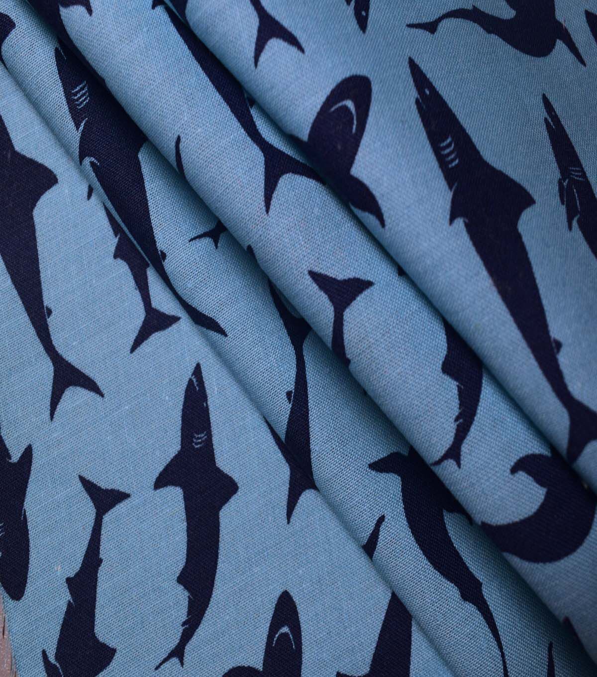 This fabric is imported and has a width of 43 inches, making it versatile for a variety of projects. Whether you're creating a quilt, pillow, or any other sewing project, Underwater Sharks on Blue Cotton Fabric by Quilter's Showcase is the perfect choice.