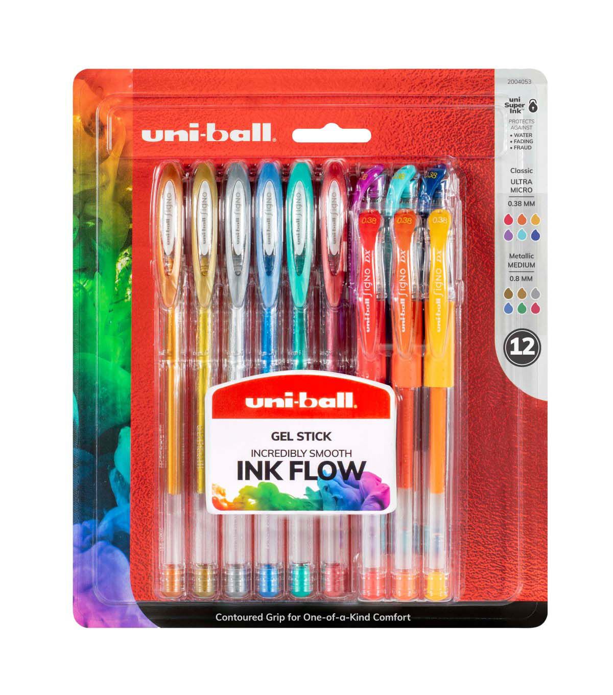 Enjoy professional gel pens with vibrant, consistently smooth ink; a perfect set for colorful note-taking, bullet journaling or scrapbooking. Their contoured grips allow for comfortable drawing, doodling and writing; the ink forms an indelible bond with paper for intense colors and permanent mark-making.