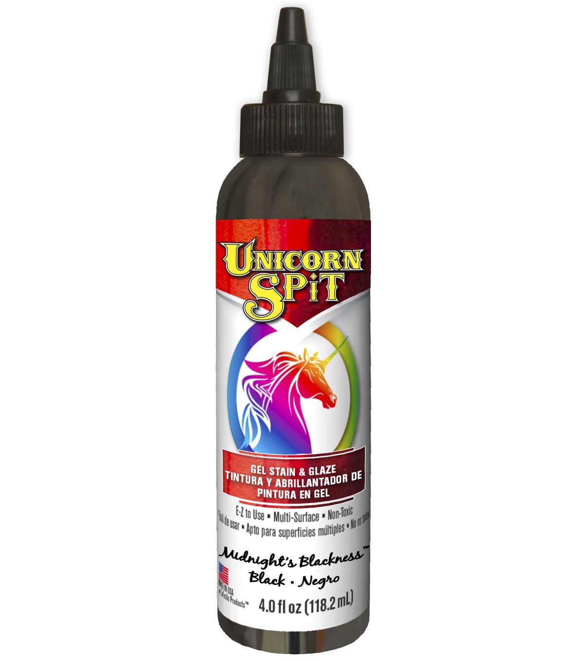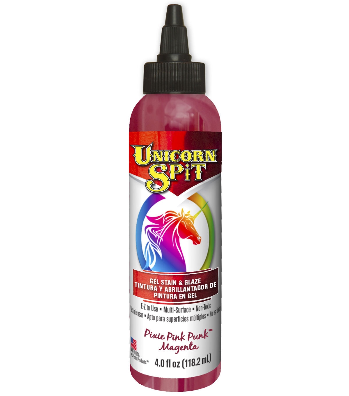 Create new projects or refinish existing ones with the Unicorn SPiT Gel Stain & Glaze. Paint, gel stain and glaze in one, it can be used on wood, glass, metal, fabric, pottery, wicker, concrete and laminate. It penetrates deep into bare wood grain, or glazes over existing finishes, brightens and highlights chalk paint, and provides a 3-D effect. Choose from vibrant colors that can be used as paint or mixed with water to create glaze, stain, white wash or antiquing tint. This bottle contains 4 fluid ounces of non-toxic, multi-surface medium that can be used indoors or outdoors.