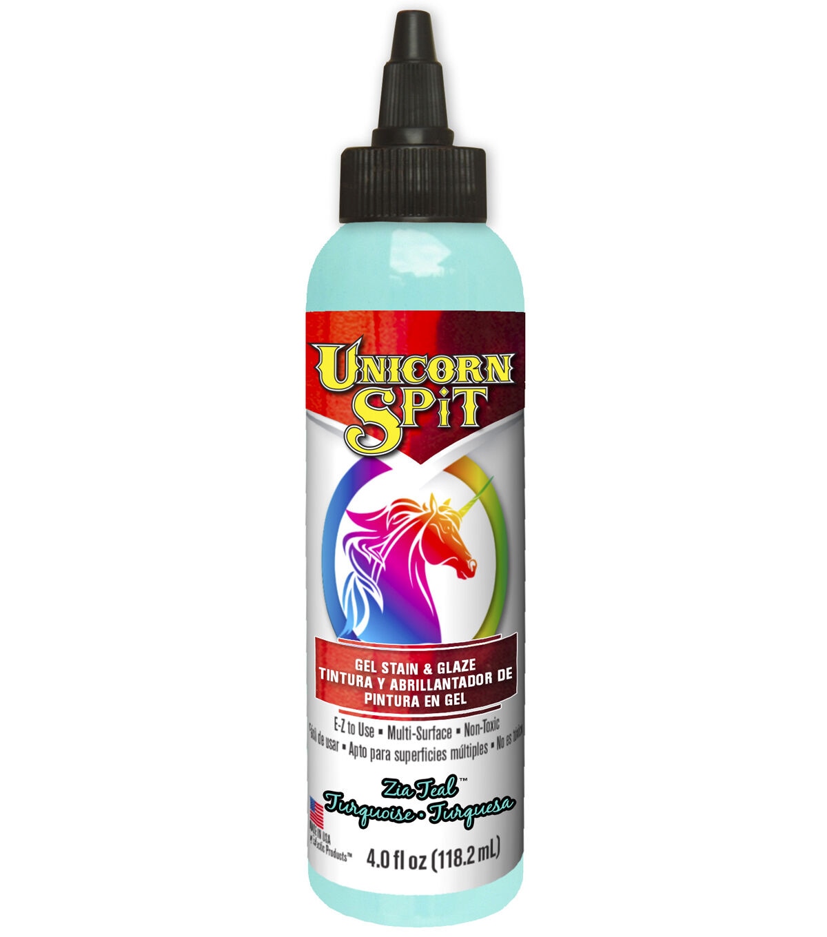 Create new projects or refinish existing ones with the Unicorn SPiT Gel Stain & Glaze. Paint, gel stain and glaze in one, it can be used on wood, glass, metal, fabric, pottery, wicker, concrete and laminate. It penetrates deep into bare wood grain, or glazes over existing finishes, brightens and highlights chalk paint, and provides a 3-D effect. Choose from vibrant colors that can be used as paint or mixed with water to create glaze, stain, white wash or antiquing tint. This bottle contains 4 fluid ounces of non-toxic, multi-surface medium that can be used indoors or outdoors.