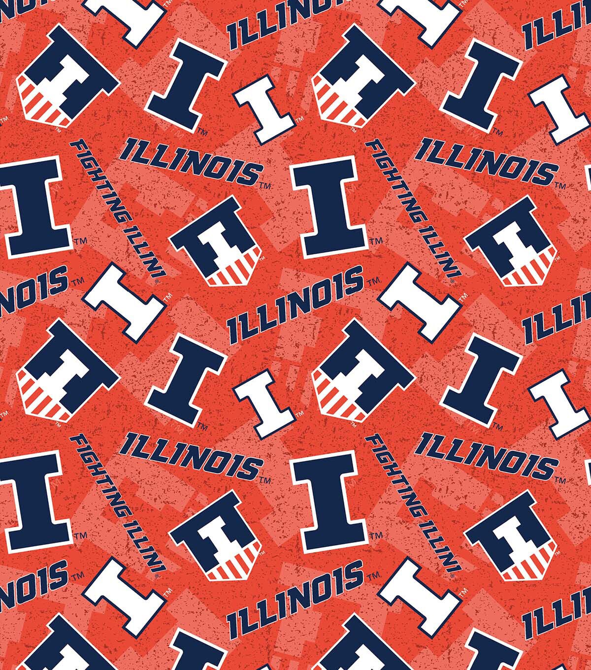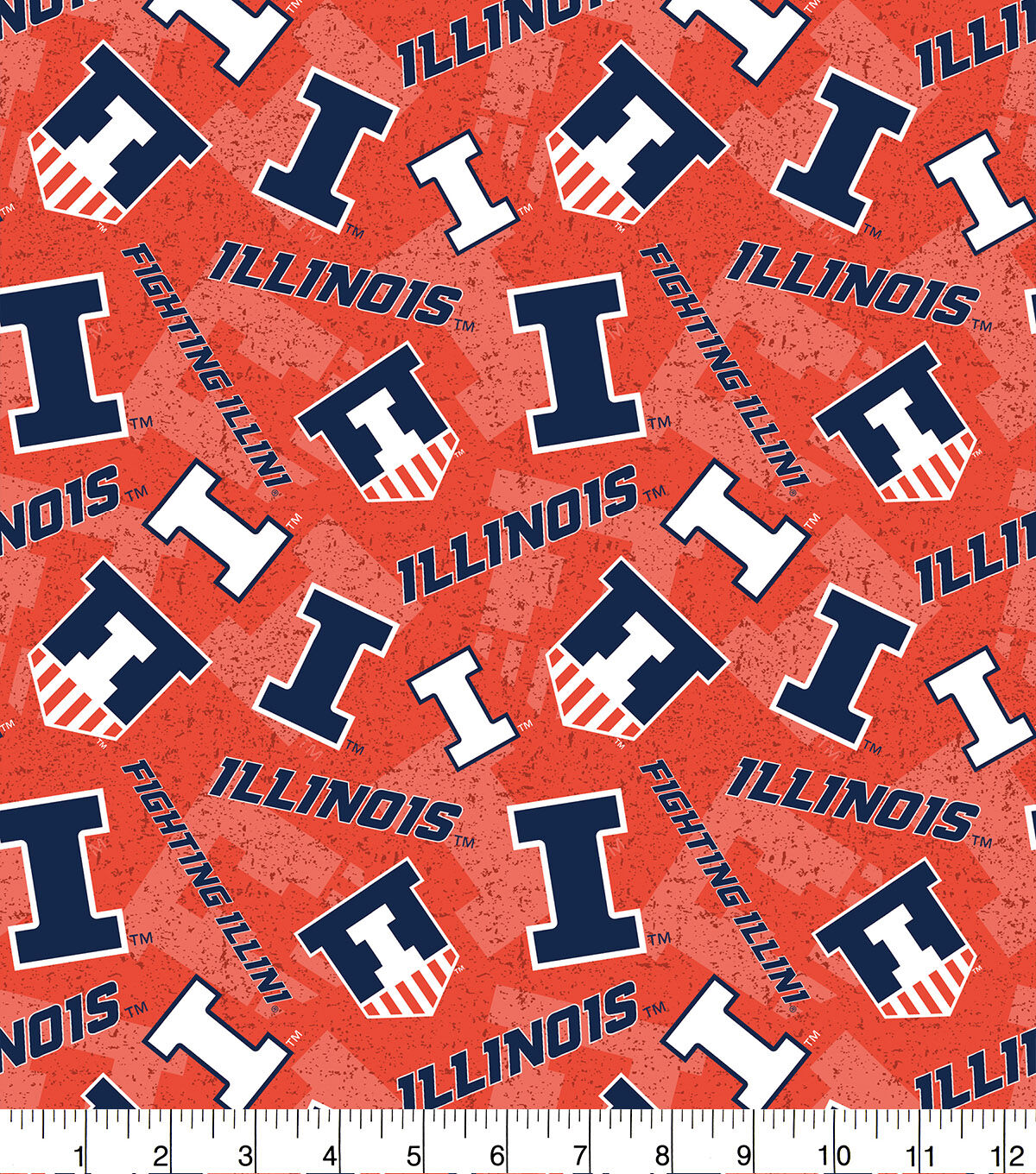 • University of Illinois Fighting Illini Cotton Fabric Tone on Tone
