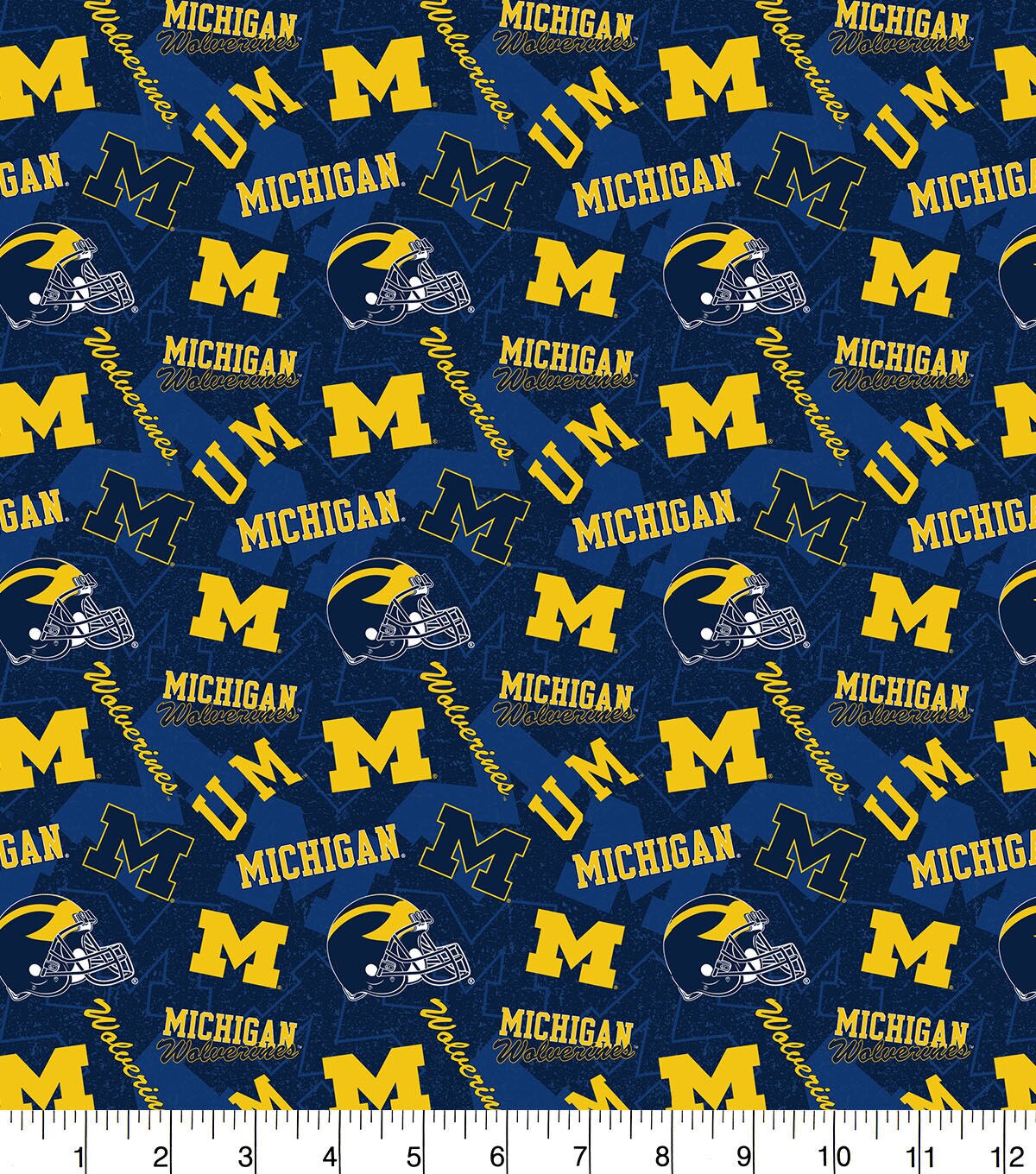 • University of Michigan Wolverines Cotton Fabric Tone on Tone