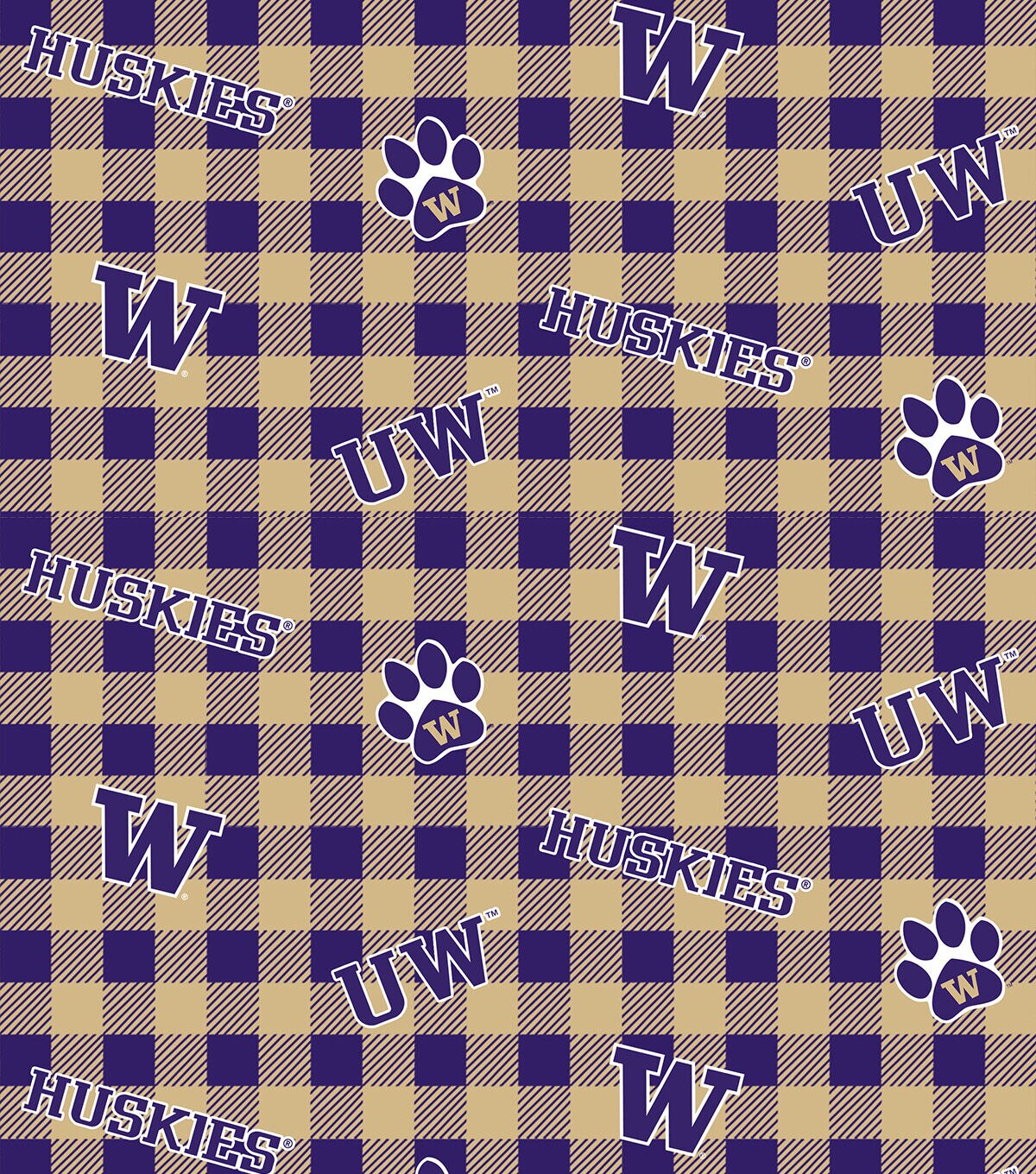 • University of Washington Huskies Cotton Fabric Buffalo Check