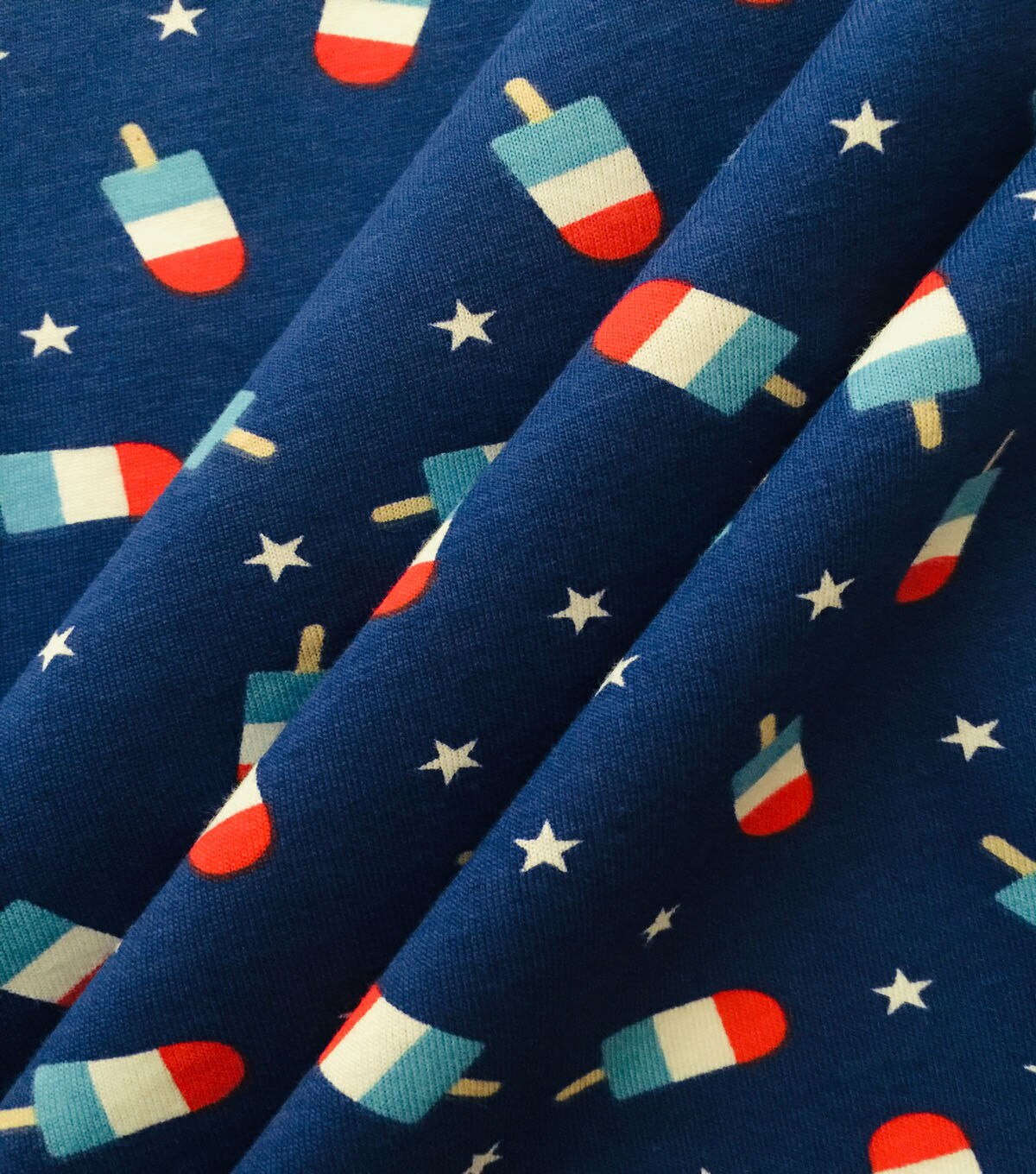 Wave your flag and celebrate wearing our USA jersey knits. These durable cotton fabrics are breathable and naturally comfortable to survive hot summer days. Don our symbolic prints as tops, dresses and more, and pop in your crafted fashion like fireworks from parades to cookouts. Plus they are a great choice for beginning sewers! We got you covered for American pride, so let's get celebrating.