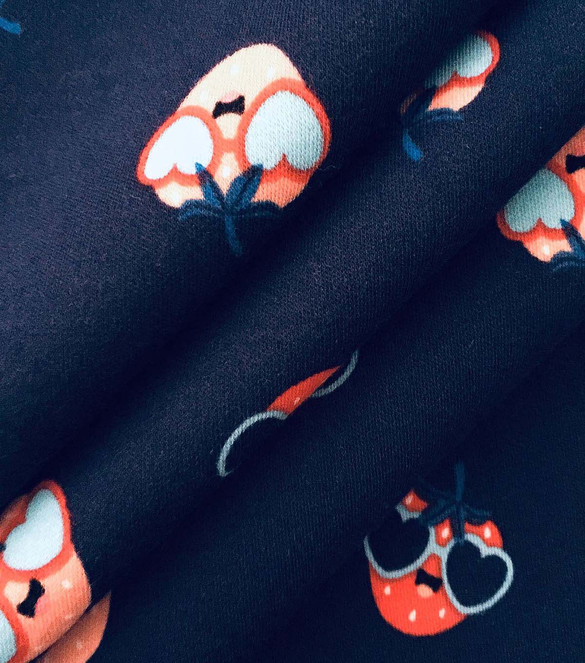 Are you ready for summer? Add a touch of Americana to your wardrobe with this fun and playful USA Strawberries on Blue Interlock Knit Fabric by POP!. Perfect for creating a variety of summer garments, this fabric features a vibrant red and green strawberry print on a blue background. The 57 inch width and 98% cotton, 2% spandex content make it comfortable and easy to work with.