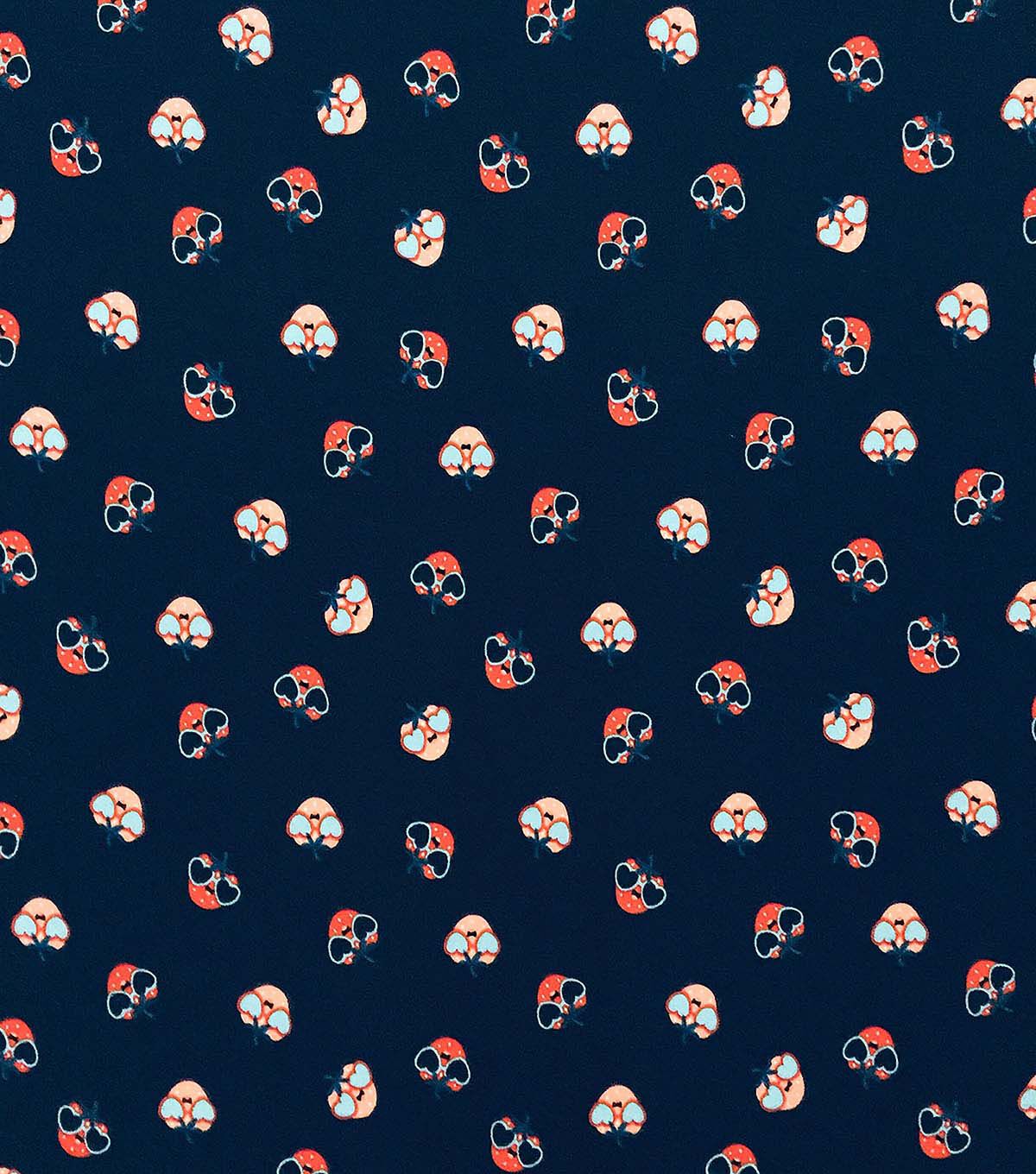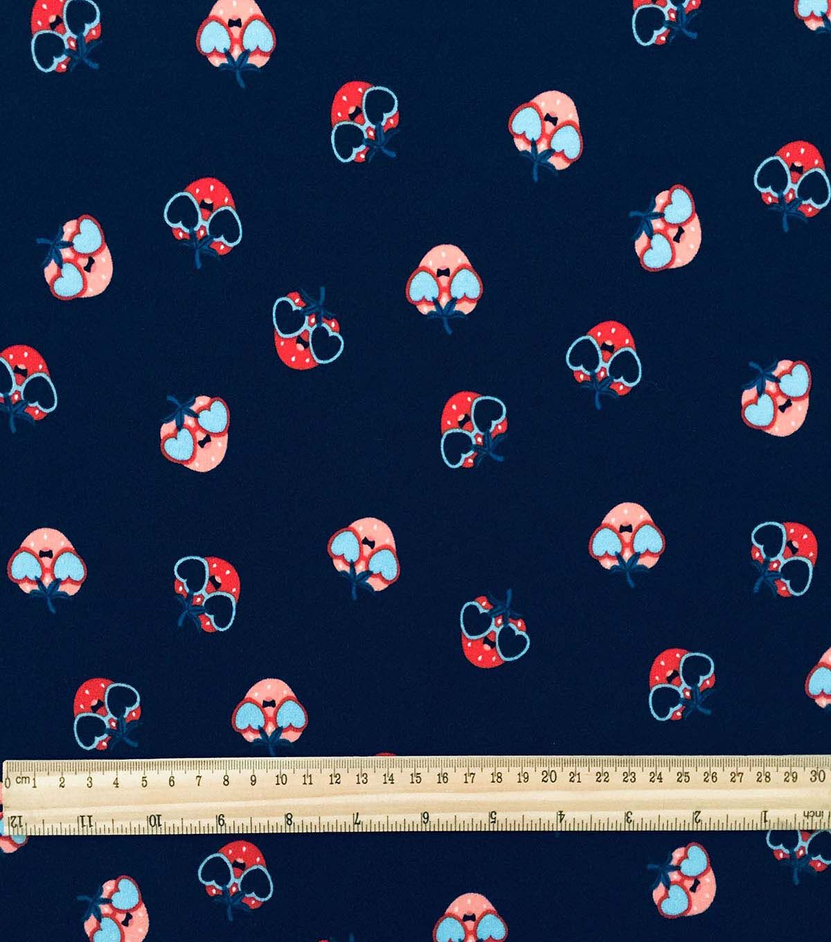 Get Ready for Summer with USA Strawberries on Blue Interlock Knit Fabric by POP!