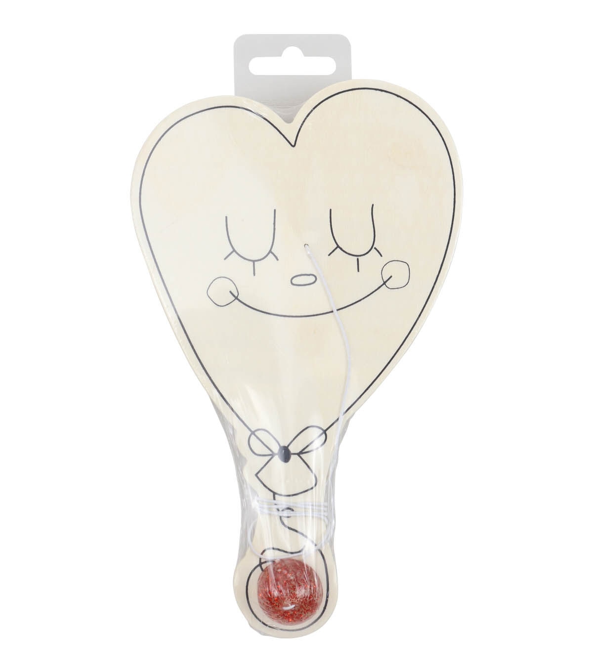 Keep your kid busy with the Valentine's Day Wood Color in Heart Paddle Ball Kit by POP! This kit contains an unfinished wooden paddle that is shaped like a heart with a smiley face and a ball in red. Your little ones can color the paddle and embellish it with glitter or sequins. The finished version will make a great gift for their friend.