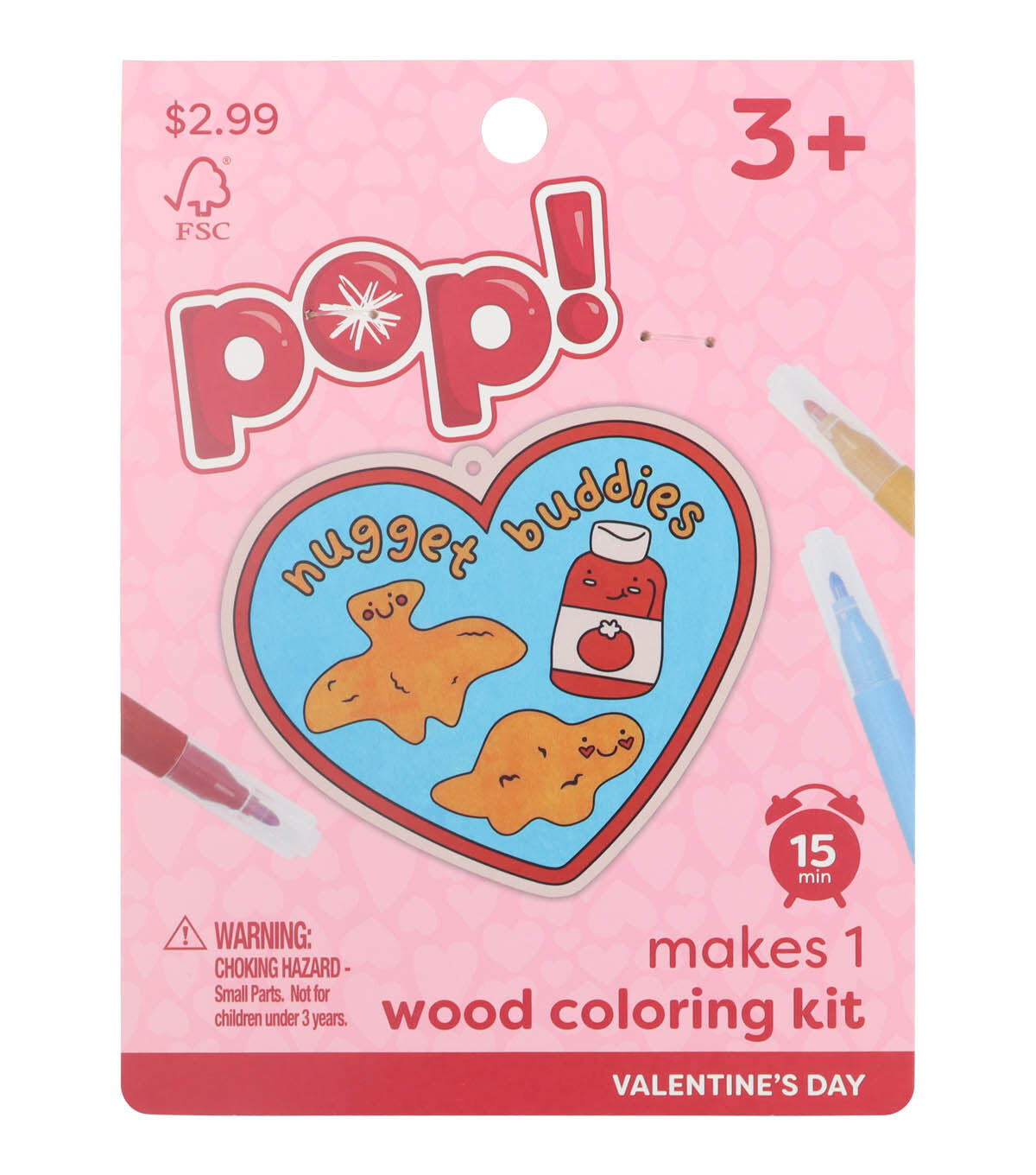 Gift the Valentine's Day Wood Nuggets Coloring Kit by POP! to your kids and let them create a lovely hanging decor accent. This kit includes an unfinished wooden accent shaped like a heart and coloring markers. Your little ones can paint nuggets and ketchup on the wood shape and adorn it with glitter. You can display the finished version on a wall in their bedroom.