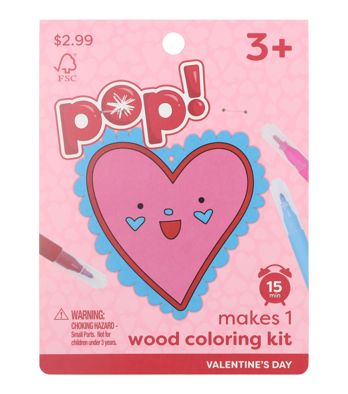 The Valentine's Day Wood Scalloped Heart Coloring Kit by POP! will make a delightful addition to your little one’s craft box. This kit includes a wood cutout in the shape of a heart with a scalloped edge along with three markers. They can give the wood shape a colorful makeover and make the finished version a part of a Valentine’s Day card.