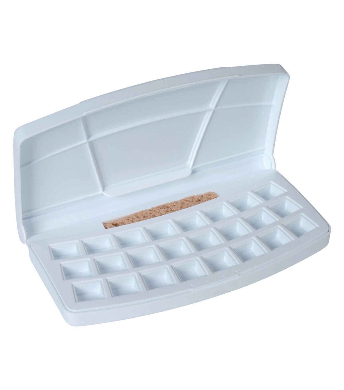 This empty plastic travel box holds 24 half pans of Van Gogh watercolor paints. Select your own pans to create a custom set!