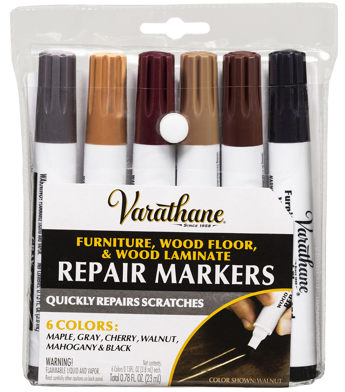 Varathane Wood Stain Repair Markers provide the full benefits of premium Varathane stain in a convenient, easy-to-use marker applicator. Pack contains a variety of colors to help match surfaces for seamless repairs. Use to correct minor scratches and blemishes in furniture, cabinets, molding, floors and more.