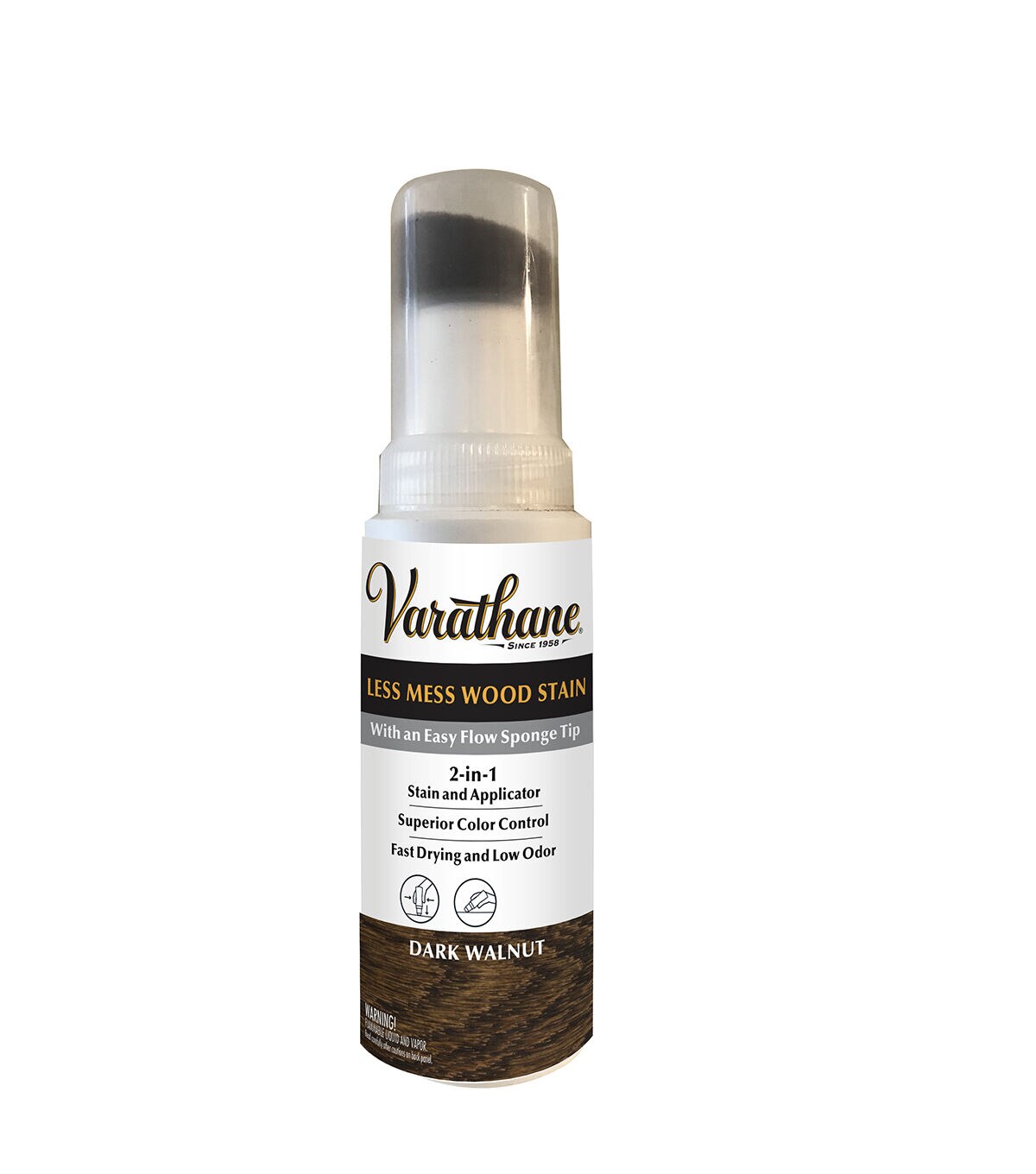 Varathane Less Mess Wood Stains are the fast, easy way to apply rich, vibrant color to wood projects such as crafts, frames, décor and other small projects. The 2-in-1 applicator bottle features a premium double-layered sponge that allows for clean, even stain distribution. Requires no extra accessories and stores easily once finished.