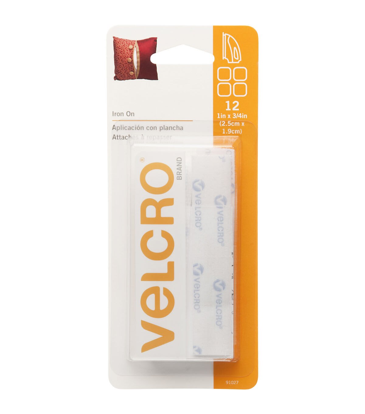 The VELCRO Brand Iron-on Fabric Fusion Heat-activated Adhesive Rectangle Set is perfect for fabrics that are thick and difficult to sew or to make quick repairs on garments without using needles and threads. This pack includes 12 heat-activated fabric fusion rectangles that measure 0.75 x 1 inch. They are easy to use and have excellent water resistance. Simply use a warm iron to activate the adhesive for a permanent bond on your fabrics. These adhesive tapes work on most fabrics, including polyester, fleece, suede, canvas and cotton. Use them to create no-sew clothing and home decor items.