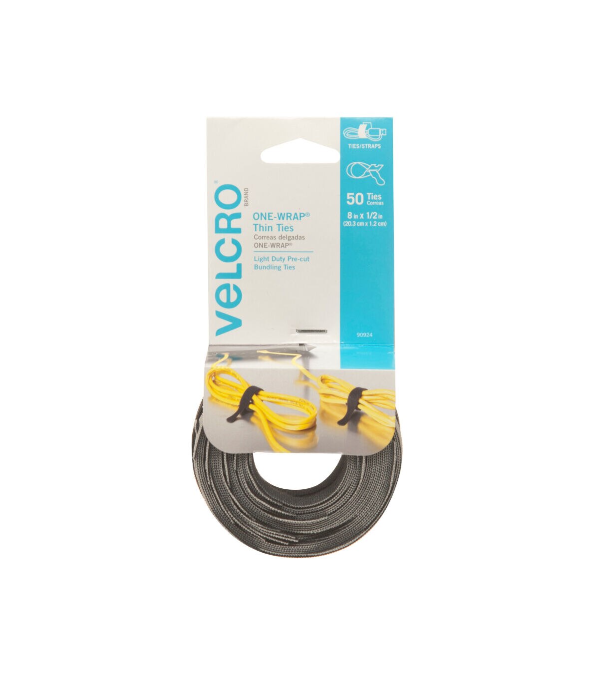 The VELCRO Brand One-wrap Thin Pre-cut Ties - Black & Gray are a low-profile and economical option for fastening wires and organizing cords. These ties are strong, reusable and pre-sized to make appliance and electronic wires and cable management quick and easy. They are designed with a slotted head that ensures the strap stays with the cord so it doesn't get lost.