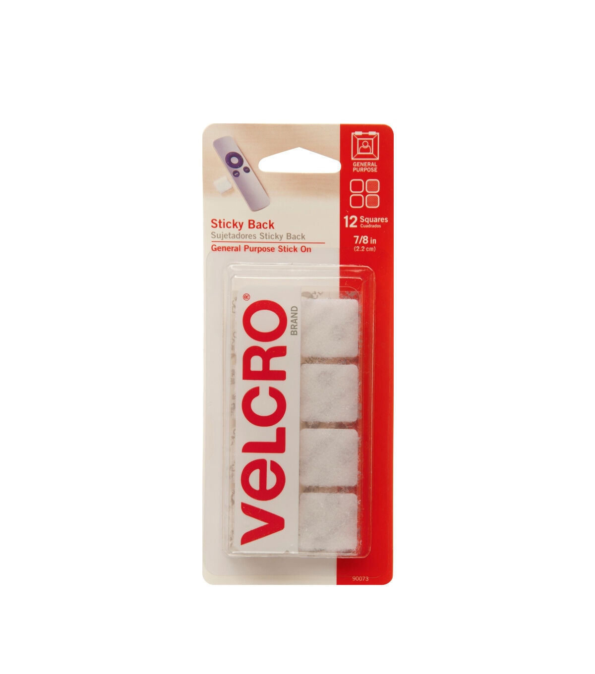 Keep your household objects organized with the VELCRO Brand Sticky-back Squares. This pack includes 12 sticky-back squares that measure 0.87 inches. These sticky-back squares stick onto any smooth surface like glass, metal, painted wallboard or plastic. You can use these square adhesives at places where nail holes are not desired. They are great for attaching wall hangings, message boards on the fridge or posters on your door with the help of these sticky-back tapes. Choose from different colors, sold separately, to suit your project needs.