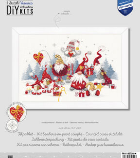 Vervaco creates magnificent designs in classical and modern styles ideal for both beginners and experts alike! Many designs originate from renowned contemporary artists. This package contains 27 count 100% cotton fabric, 100% cotton DMC embroidery floss, one needle, large-square charted design, frontsheet, and instructions in eight languages. Finished Size: 15.2x10.8 inches. Design: Christmas Meeting. Imported.