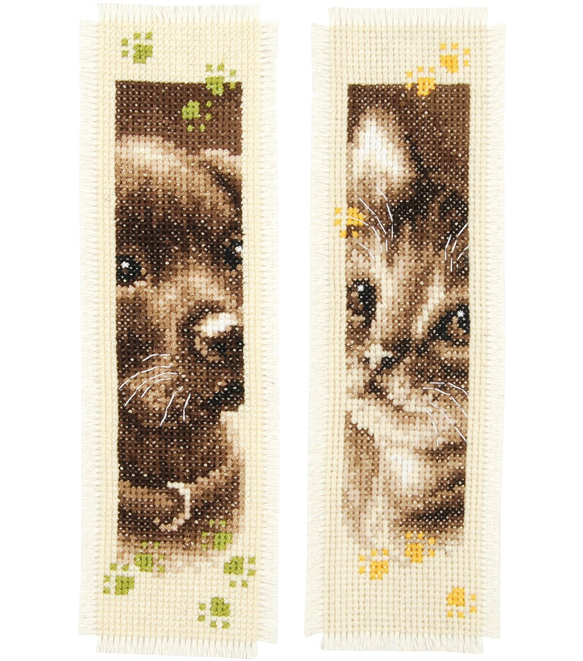 Vervaco-Cat And Dog Bookmarks On Aida Counted Cross Stitch Kit. Vervaco creates magnificent designs in classical and modern styles ideal for both beginners and experts alike! Many designs originate from renowned contemporary artists. This package contains 14 count Aida fabric, 100% cotton DMC embroidery floss, one needle, a large full color finished model picture and instructions. Finished Size: two 3x6 inch bookmarks. Imported.