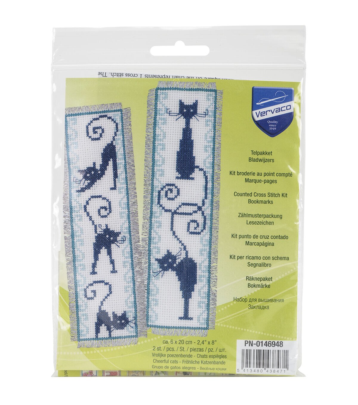 Stand out in class with unique embroidered bookmarks from the Vervaco Set Of 2 2.5'' x 8'' Counted Cross Stitch Kit-Cheerful Cats Bookmarks. The bookmarks feature stunning prints of cats along with accented edges. Ideal for starters as well as experts, this counted cross stitch kit includes all sewing essentials like 14-count 100% cotton fabric, cotton embroidery floss, a needle, designed chart for reference and guidelines. Kit can be used to make two 2.5 x 8-inch bookmarks.
