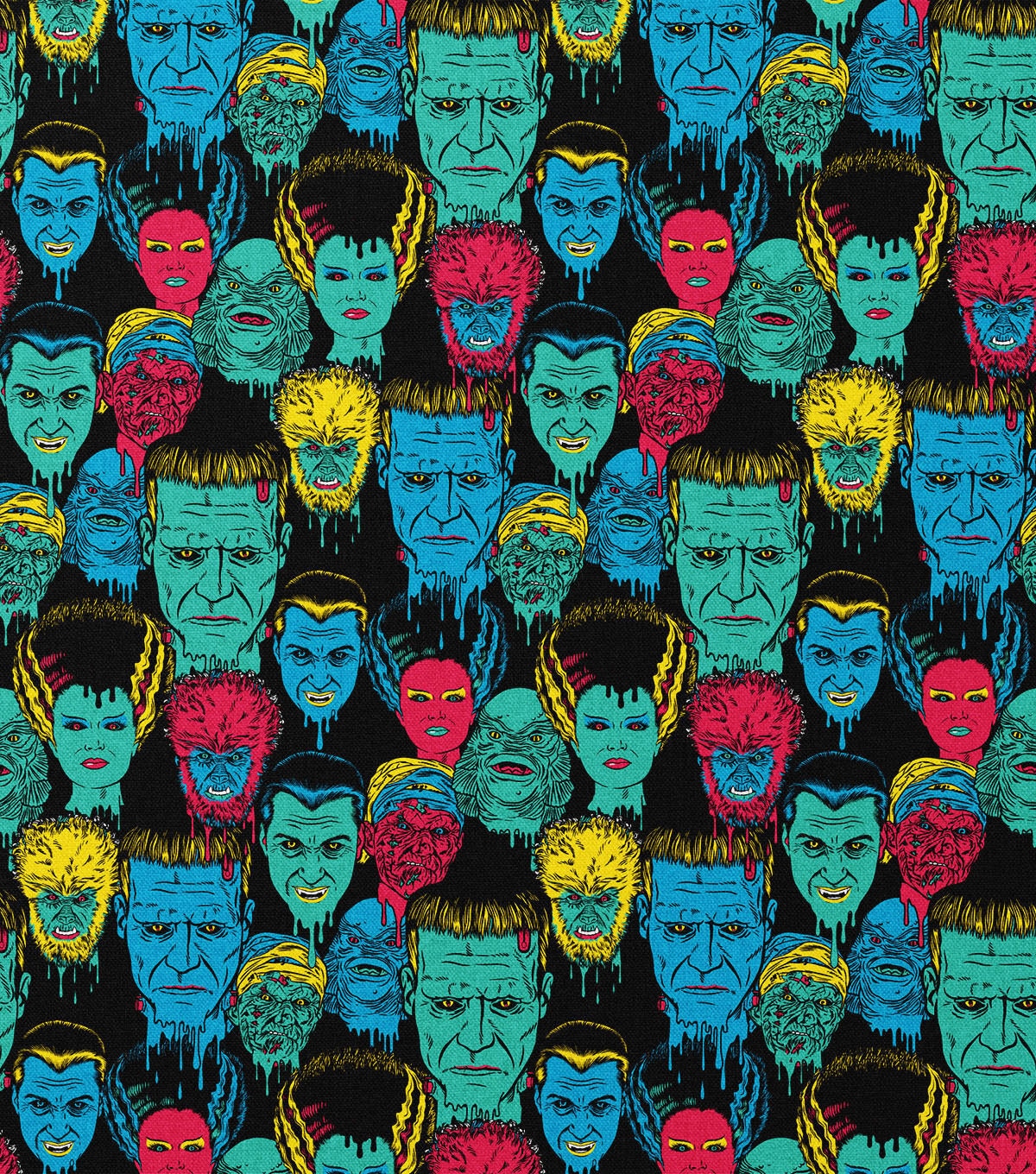 Vibrant Packed Monsters Halloween Cotton Fabric