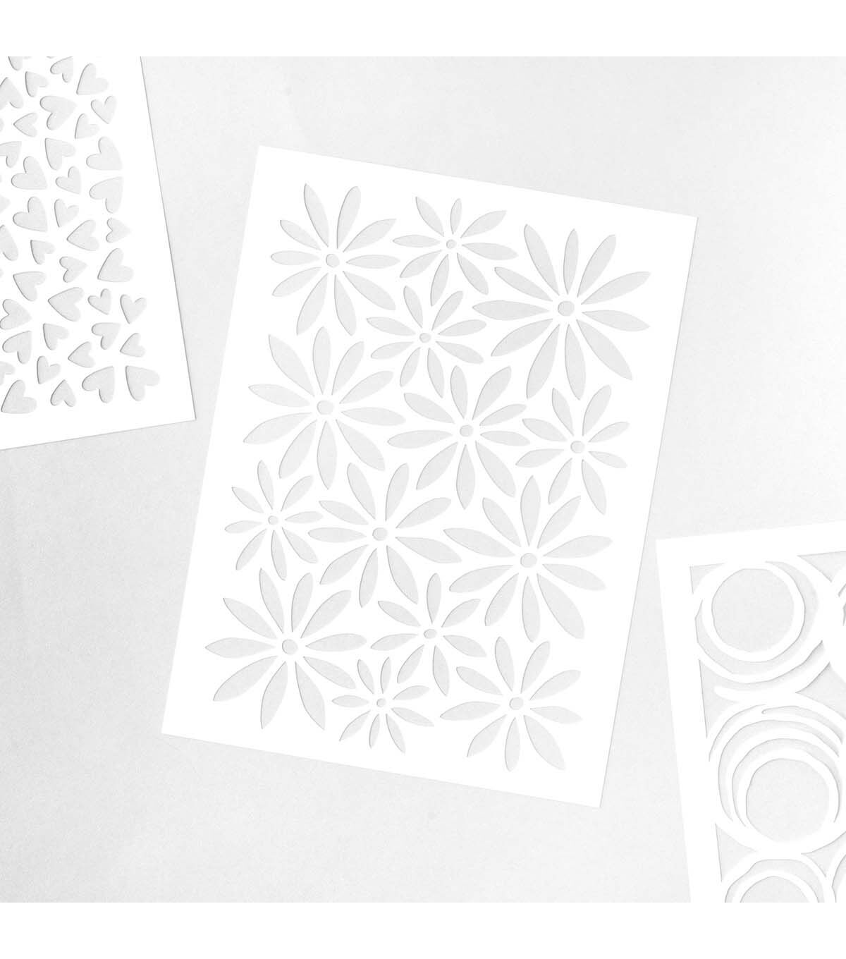 Enhance your creative toolkit with the Vicki Boutin Stencils - Floral, a set of three precision tools designed for versatile applications. These durable stencils are perfect for adding detailed patterns to mixed media projects, cardmaking, and scrapbooking.