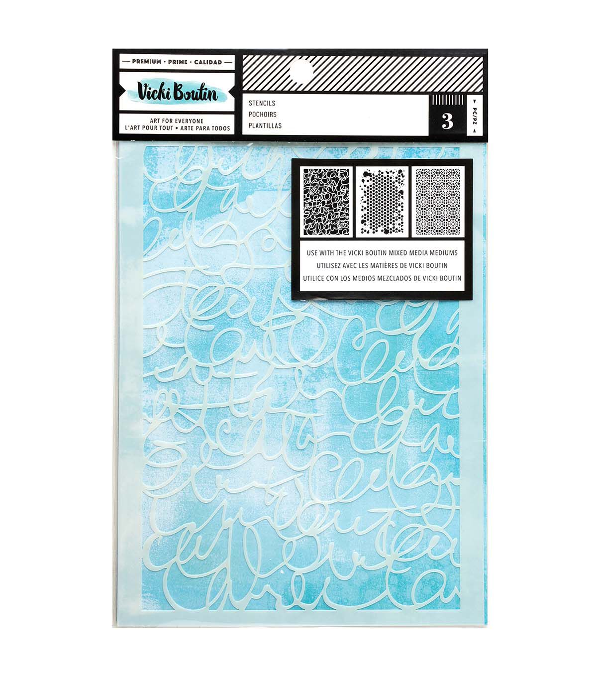 Enhance your creative toolkit with the Vicki Boutin Stencils - Script, a set of three precision tools designed for versatile applications. These durable stencils are perfect for adding detailed patterns to mixed media projects, cardmaking, and scrapbooking.
