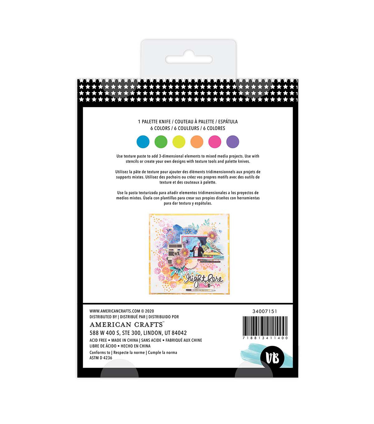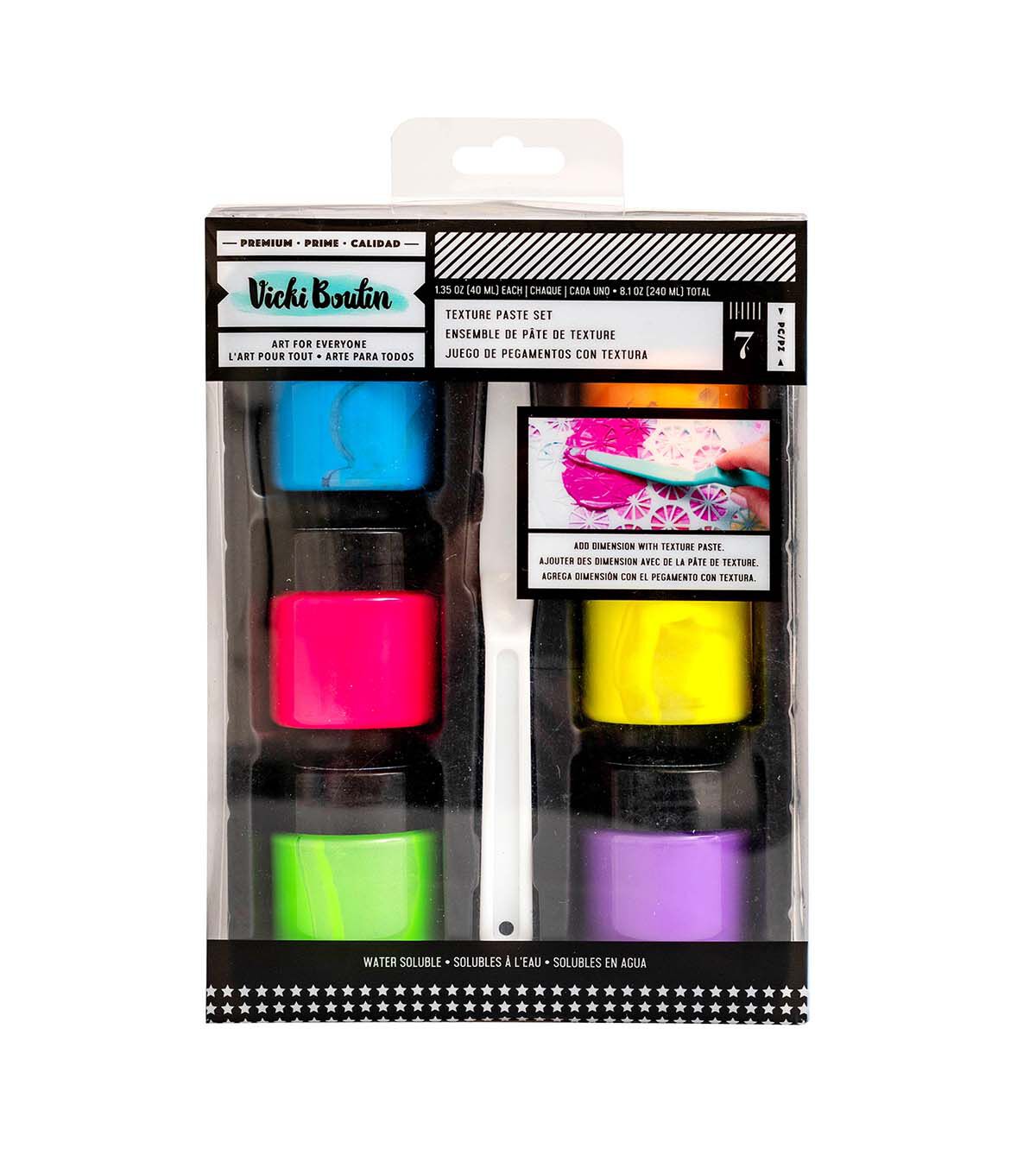 Add some serious texture and feel to your projects with texture pastes! These versatile pastes are great for mixed media projects, scrapbooks, cards, and so much more. Pair them with stencils to create unique pieces. This package includes 7 texture pastes in 7 bold colors, and one plastic palette knife.