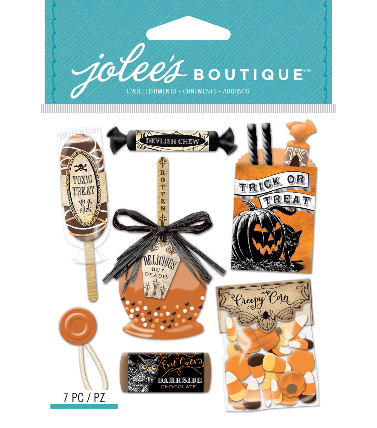 Layered with detail and spooky delight, these Jolee's Boutique - Vintage Treats are sure to satisfy all of your Halloween cravings. These charming embellishments are the perfect way to add a little sweet treat to any crafting project.