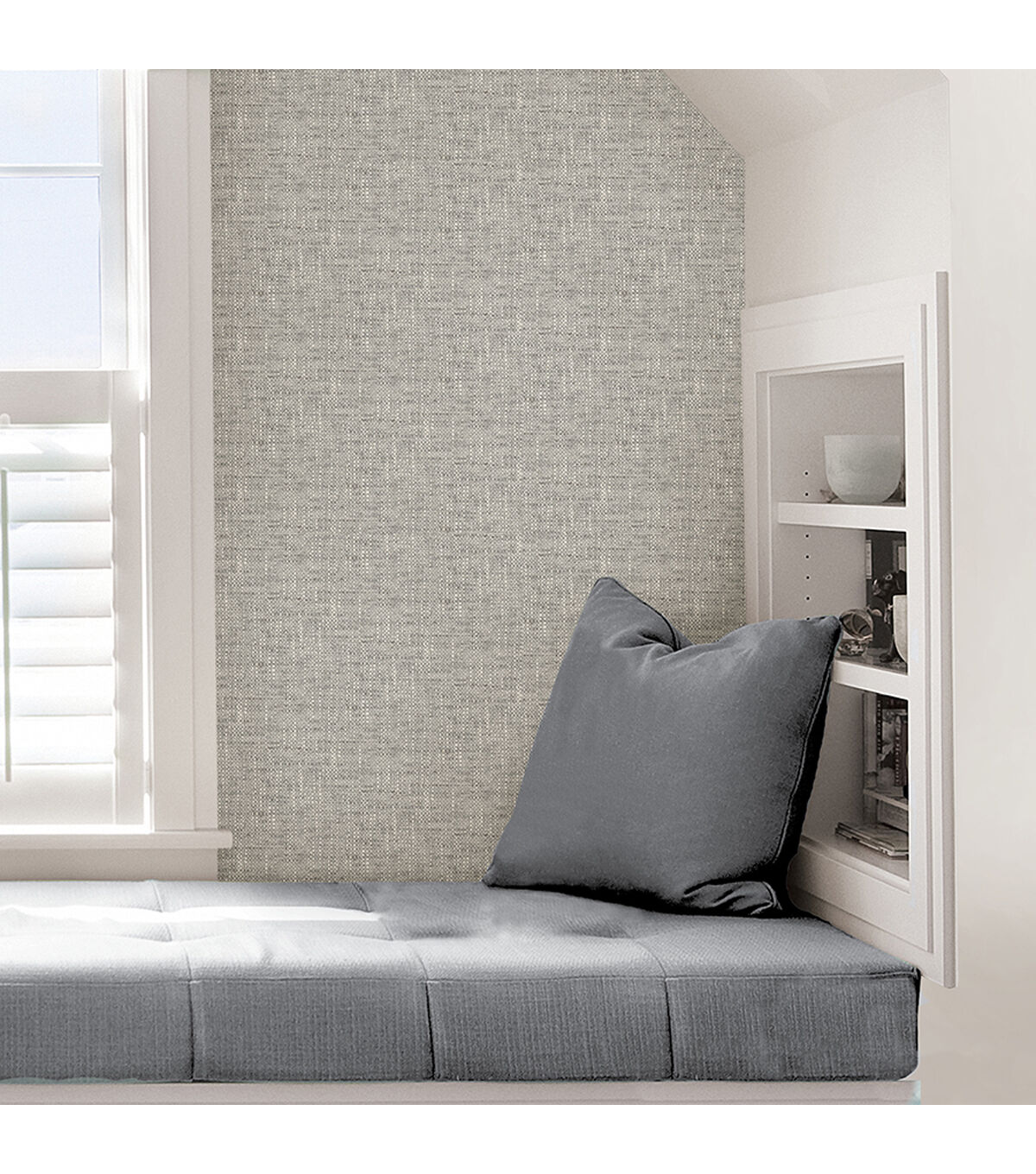 Designed to resemble woven fabric, this Wallpops NuWallpaper Peel & Stick Wallpaper-Gray Poplin Texture has a chic feel. Its raised ink details add to its realistic look. The pack contains one sheet of wallpaper that measures 216 x 20.5 inches.