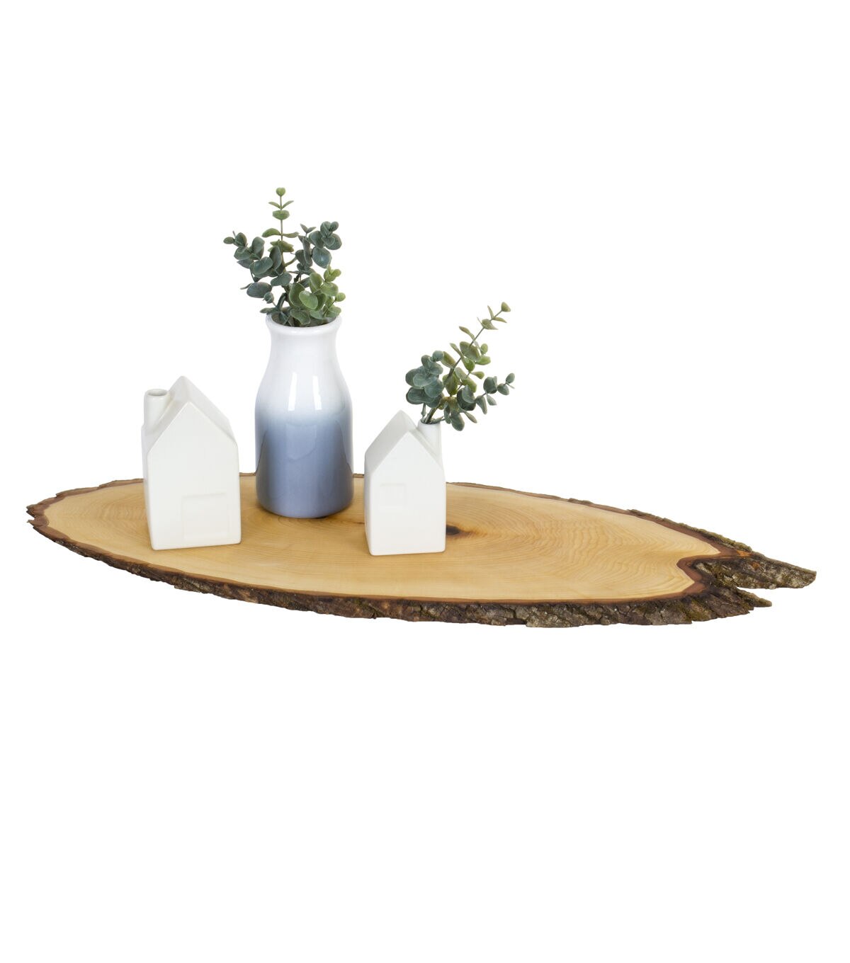 The Walnut Hollow Elongated Basswood Country Round piece is the perfect surface for a large rustic signboard. You can use it to make an attractive tablescape surface for displaying flower arrangements or any centerpiece. Add fresh flowers, candles and garlands to it for a beautiful display. You can also apply mineral oil and convert this basswood piece into a food-safe serving board or cutting board. Vertically attach to a wall and use as a child’s growth chart or add simple embellishments such as knobs, hooks or handles for the perfect storage space in any room. It has been kiln dried to prevent warping and cracking.