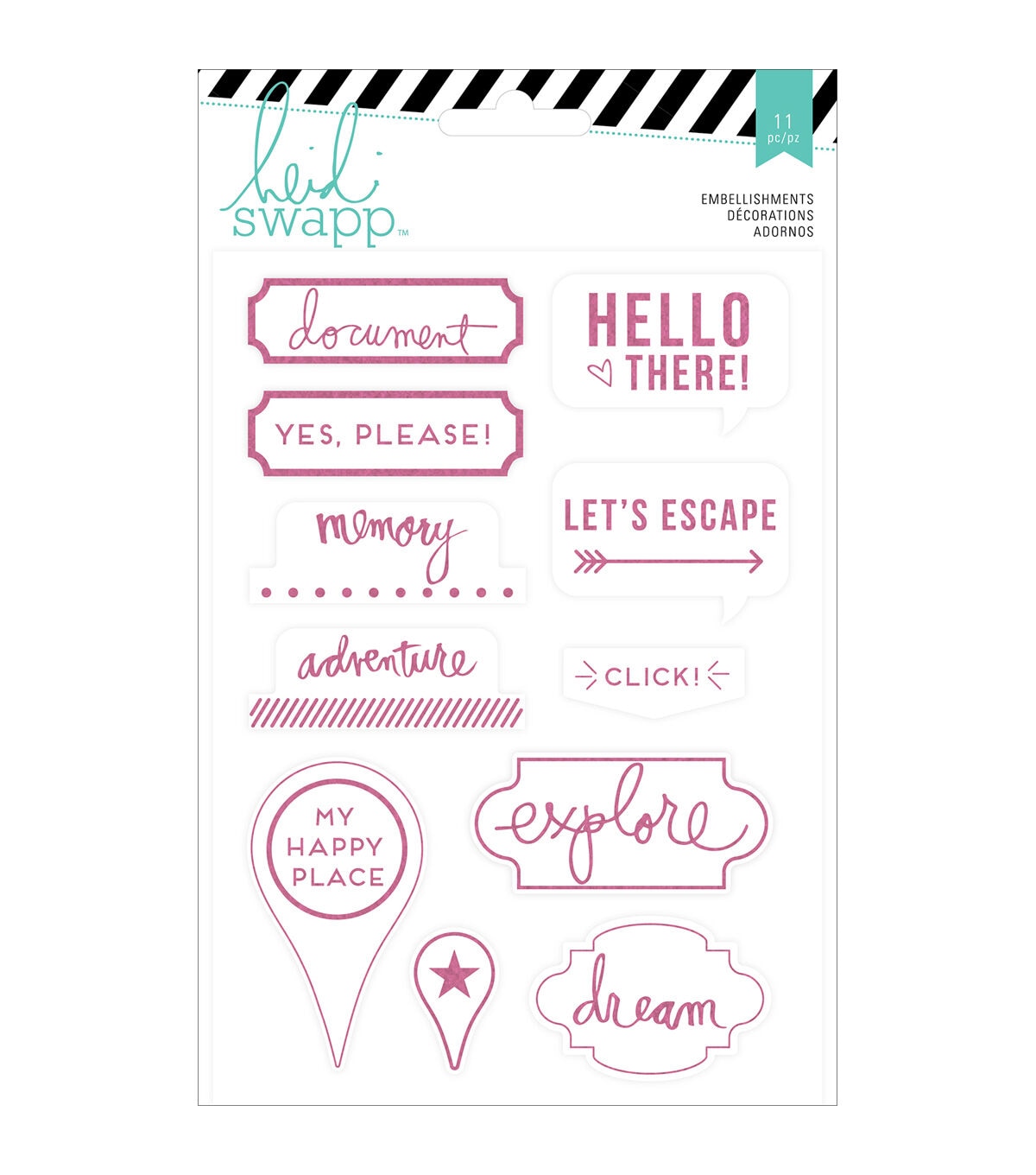 • Wanderlust Acrylic Embellishments 11/Pkg-Pink Flocked