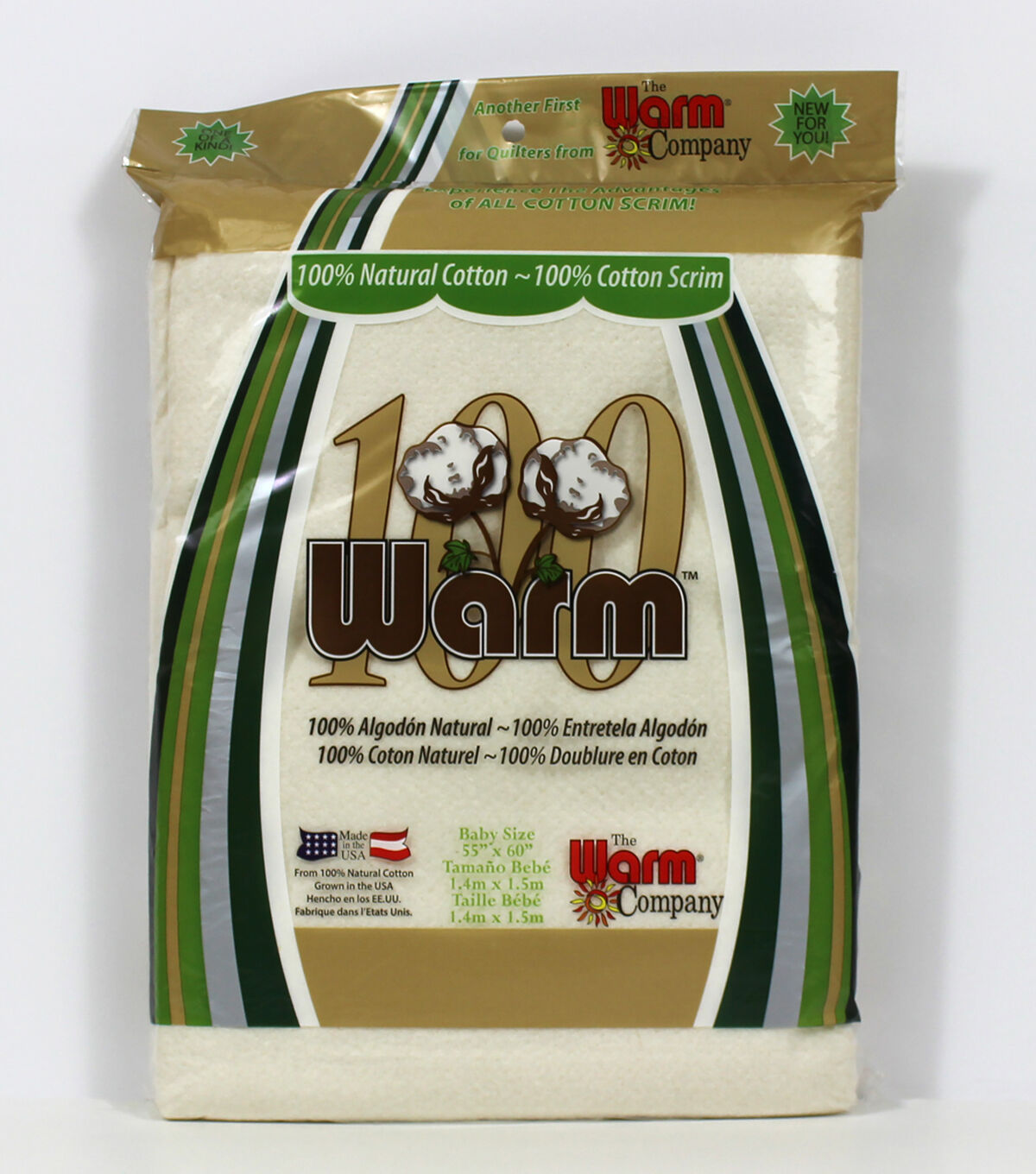 The Warm Company is dedicated to the manufacture of the most innovating quilt battings and fusible webs. Warm 100 is no exception. Warm 100 is the only batting in the world manufactured with 100% Natural Cotton needled into a 100% All Cotton Scrim! State of the art mechanical cleaning removes all seeds and plant remnants for super clean natural cotton needle-punched into an all new cotton scrim! The cotton scrim holds the fiber together for the softest, easiest to work with cotton batting you’ve ever experienced! The master of cotton quilt batting has done it again. Another first for quilters from The Warm Company!