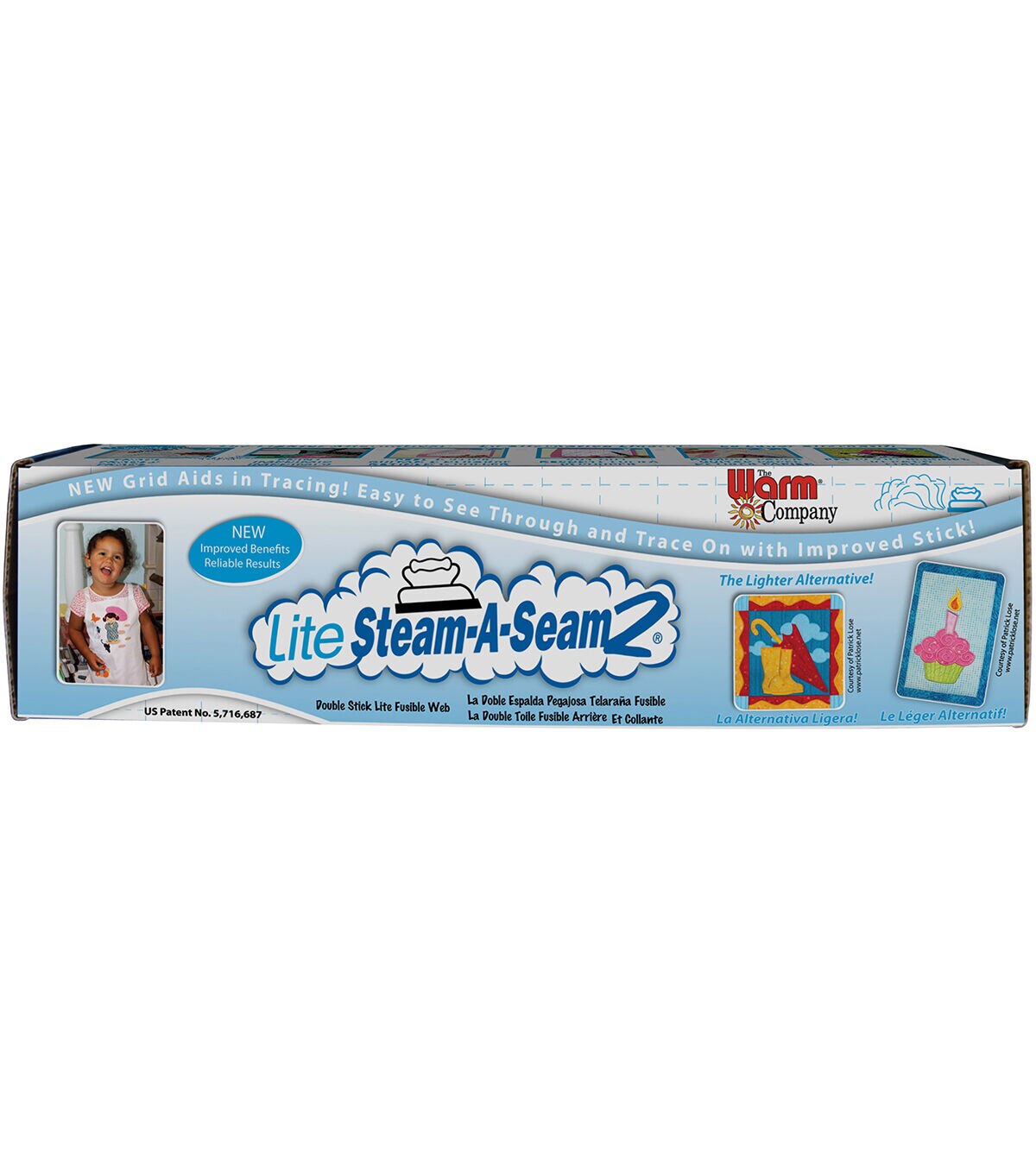 Quickly create hems, seams and appliques or apply lace trims and ribbons on fabric or quilting projects using The Warm Company Lite Steam-A-seam 2 Double Stick Fusible Web. It is pressure sensitive on both sides to temporarily hold fabrics together and in place and is repositionable until fused with an iron. Once fused, the bond is permanent and machine washable and dryable. This pack contains 25 yards of 18-inch wide double-stick fusible web that is designed for use with sheer and lightweight fabrics. You can also use it with heavy fabrics, paper, cardboard, wood and glass beads.