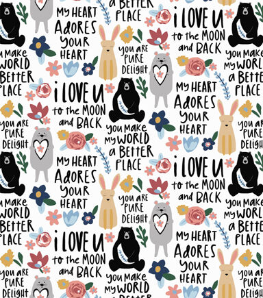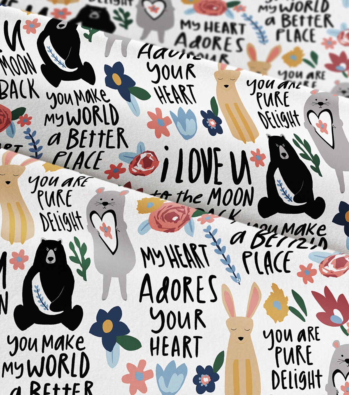 • Watercolor Animals Words Nursery Flannel Fabric