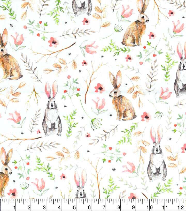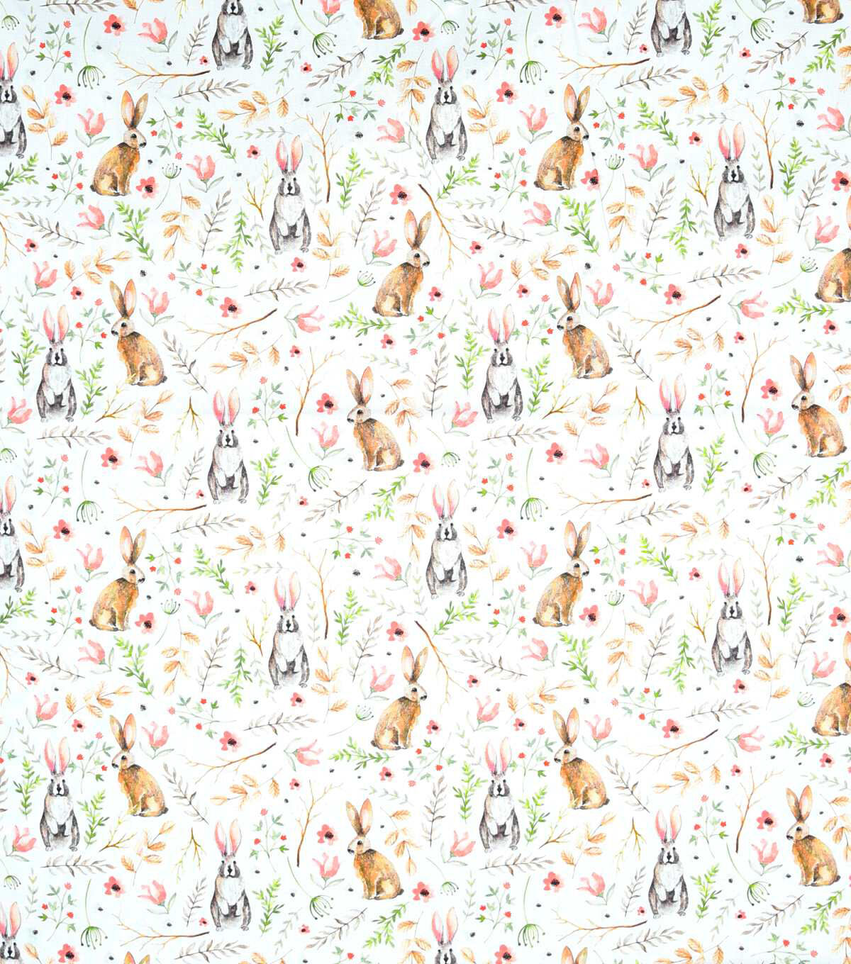 • Watercolor Rabbit & Leaves Easter Cotton Fabric