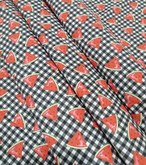 • Watermelon On Black Plaid Novelty Cotton Fabric