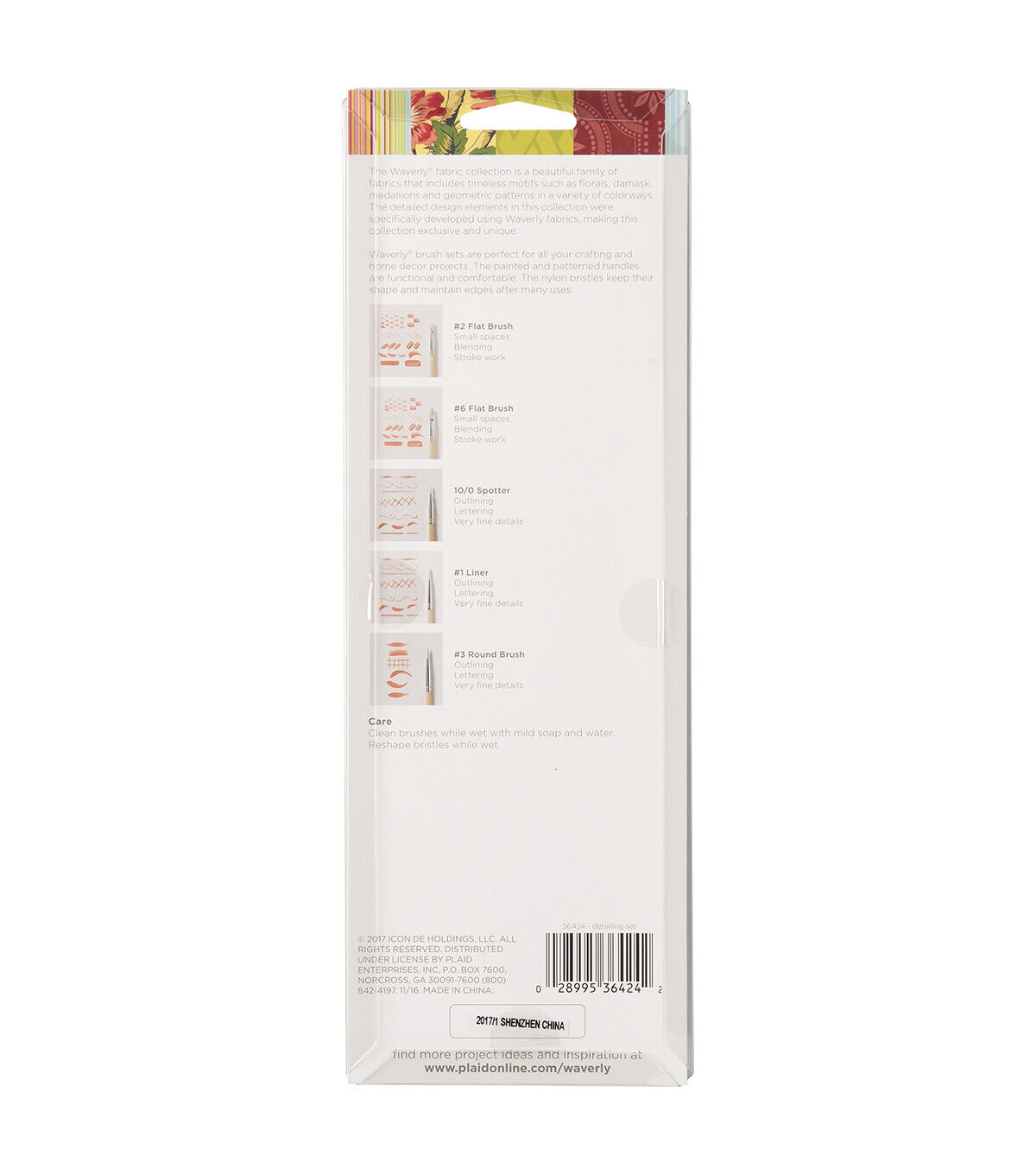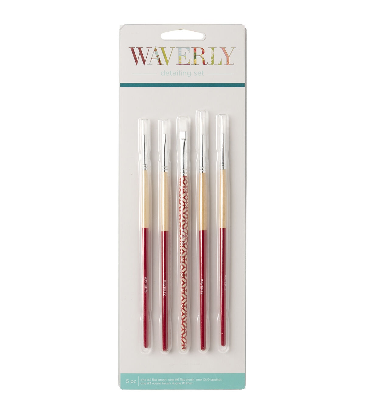 Waverly detailing brushes are perfect for all of your intricate crafting and home decor projects. The painted and pattern handles are functional and comfortable. The nylon bristles keep their shape and maintain edges after many uses.