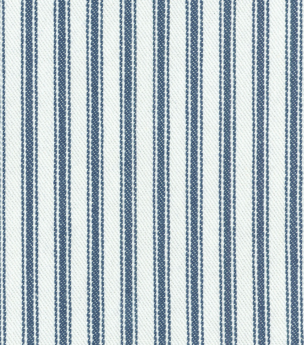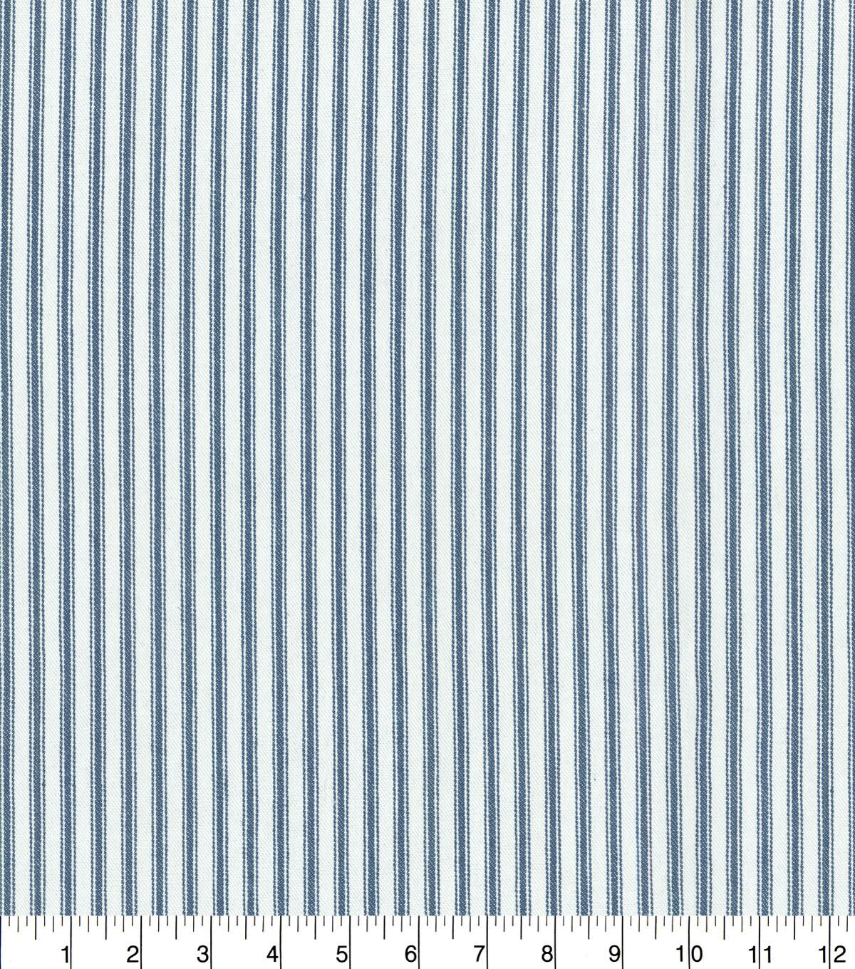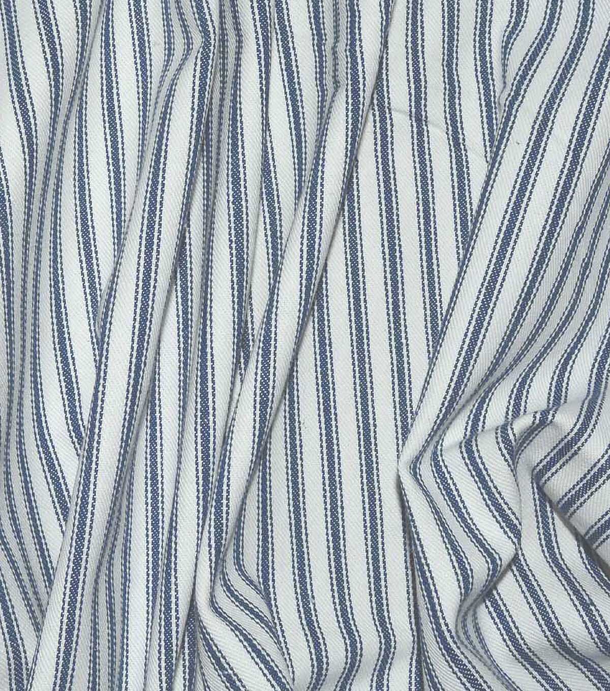 Upholster your living and bedroom furniture by using the Waverly Upholstery Fabric-Navy Classic Ticking. This printed fabric features a stripe pattern on a contrasting background. Suitable for making placemats, duvet covers, bedspreads and more, this 55-inch wide fabric is made of 100% cotton. Mix and match it with other upholstery fabrics, sold separately, to complement the design you have at home.