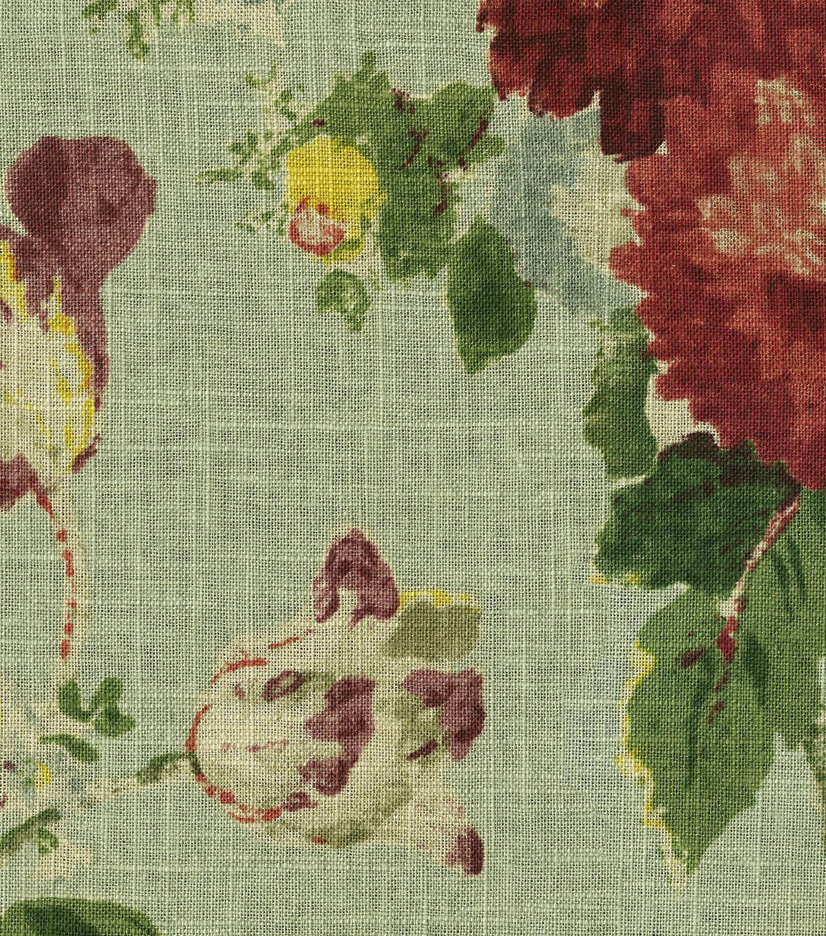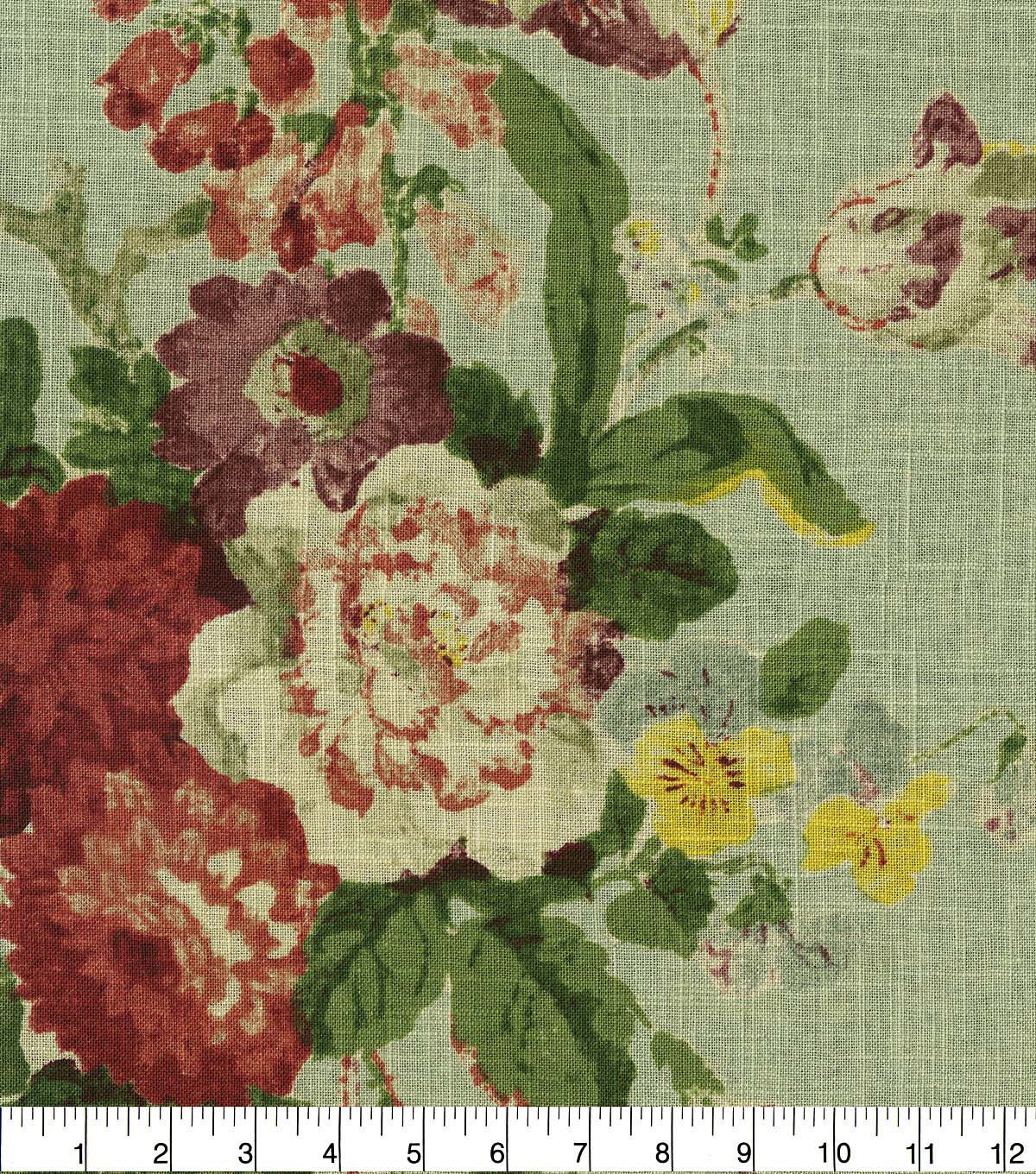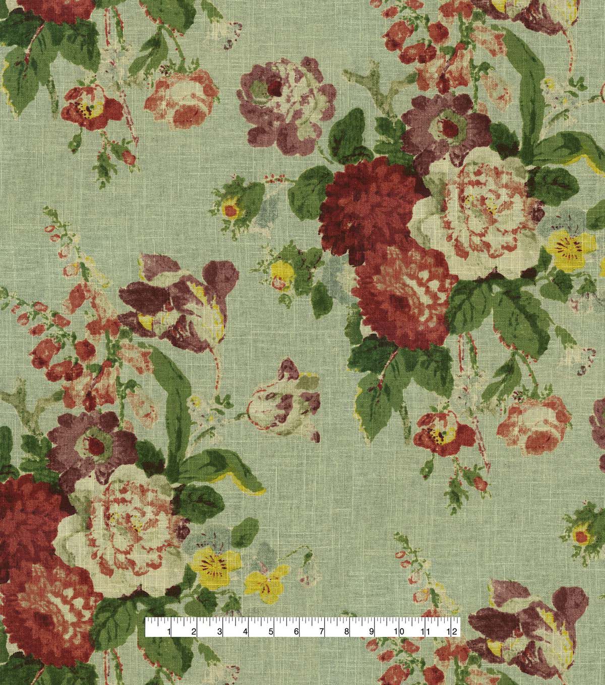 Note the painterly technique reflected by Waverly Nora. Featuring a vintage, classic five-star bouquet. Printed on a linen/rayon. Create charming home décor decorating projects including draperies, upholstery throw pillow, table top products, cushion covers and more.