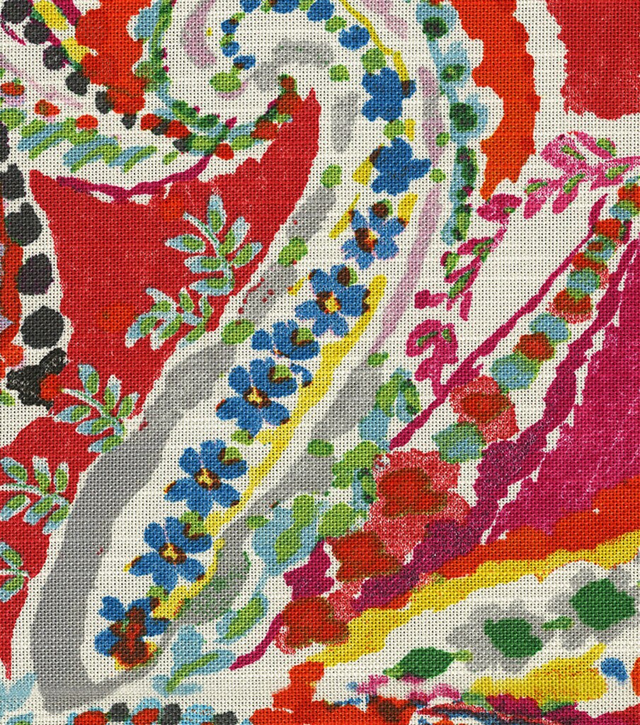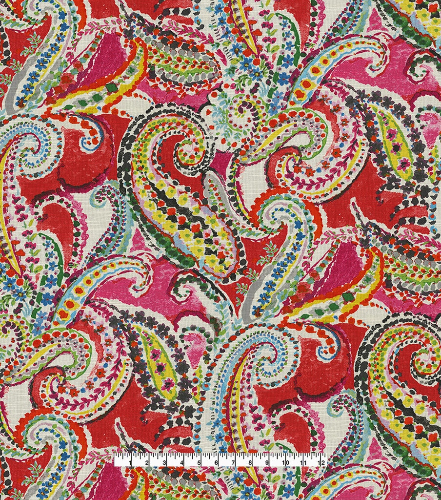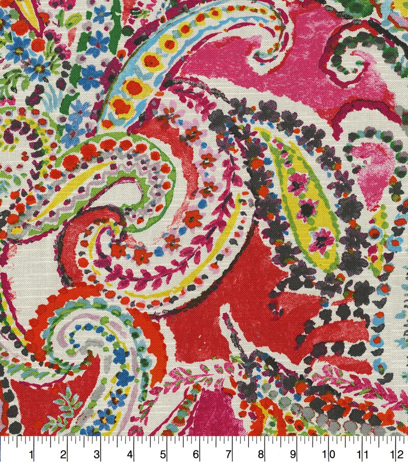 Waverly Painterly is a fresh hand-painted paisley with a vibrant eye-catching palette. Dallops of color coalesce with playful strings of flowers and vines to conduct each distinctive teardrop pattern. This lovely fun paisley will brighten your interior and will complement the room.