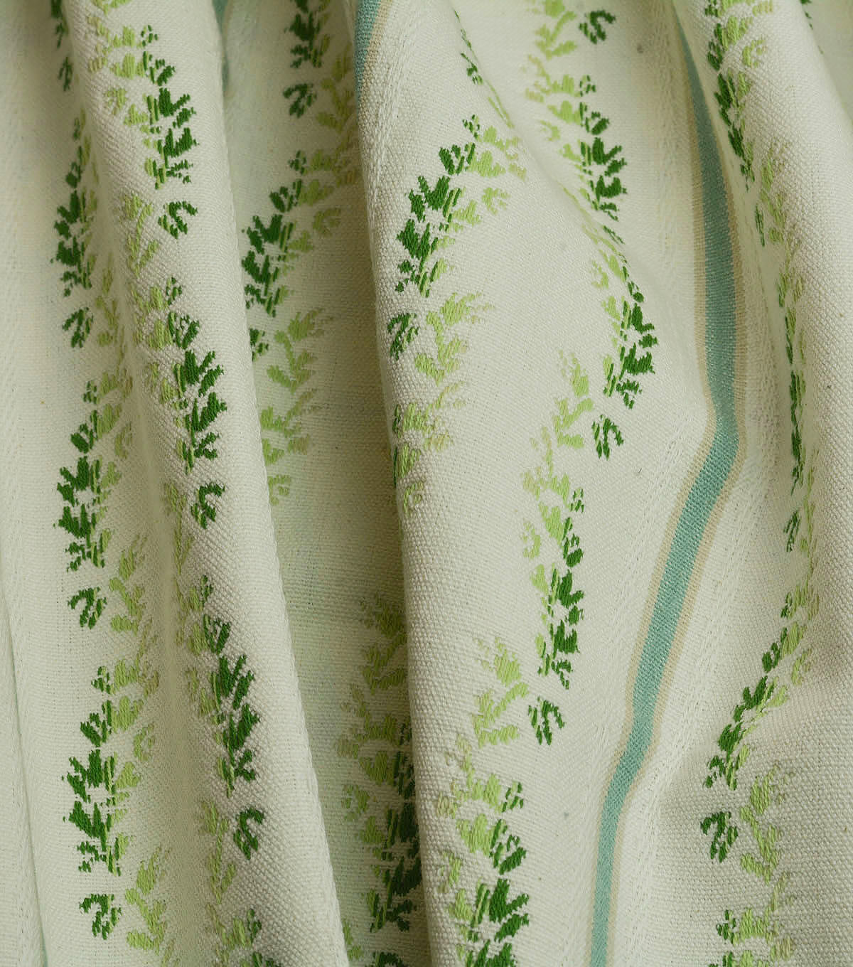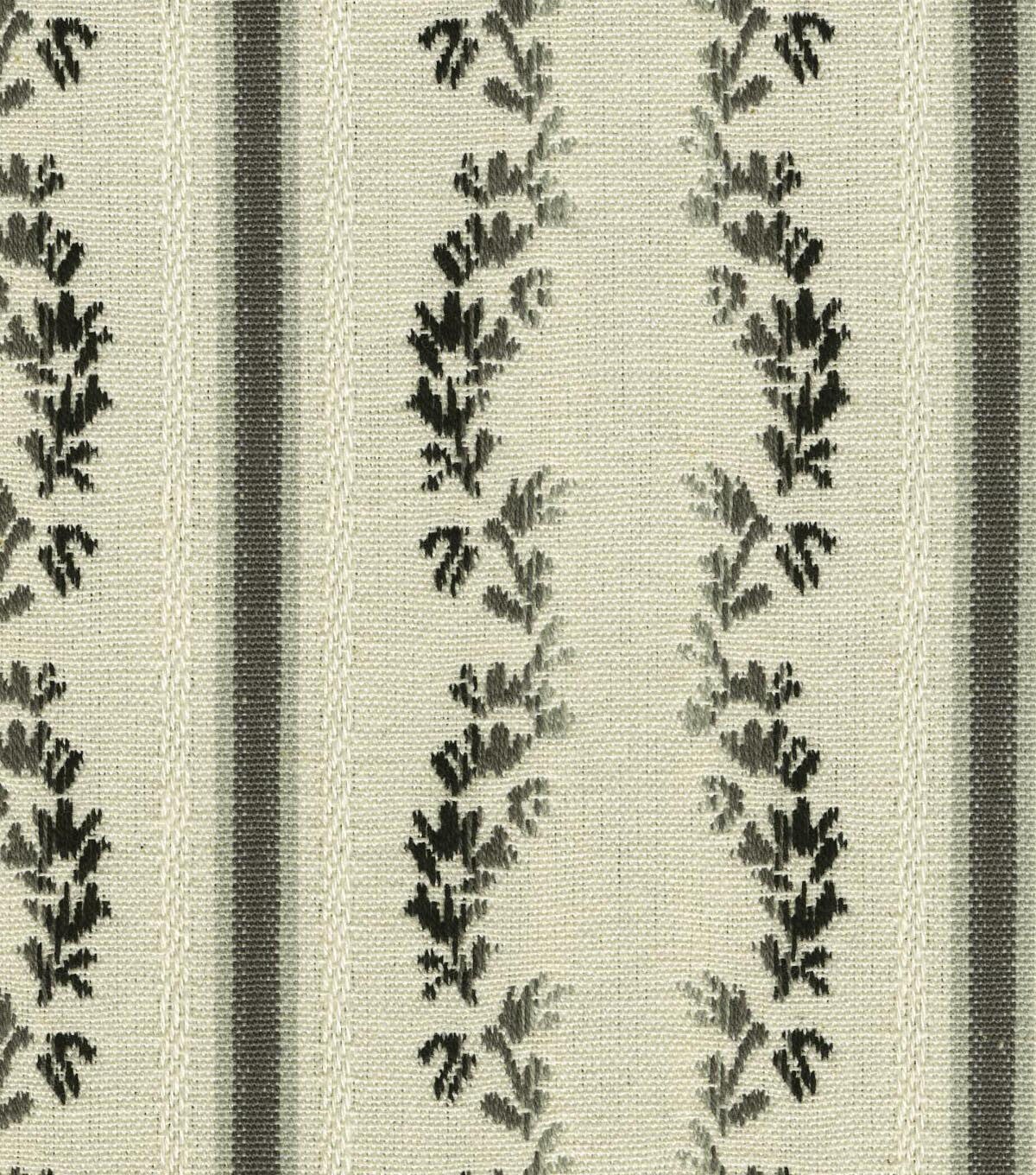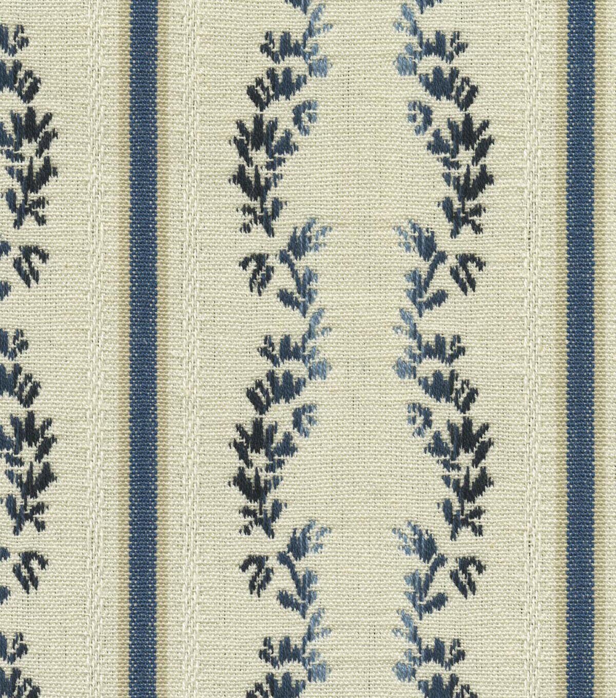 Waverly Regency Stripe brings a modern update to the 18th century lisere, presenting a more relaxed cotton contruction. Vertical stripes are embellished with columns of parallel ombre leaves. This Content: 100% Cotton, woven jaquard has a soft hand which allows it to be used for multiple applications & projects.