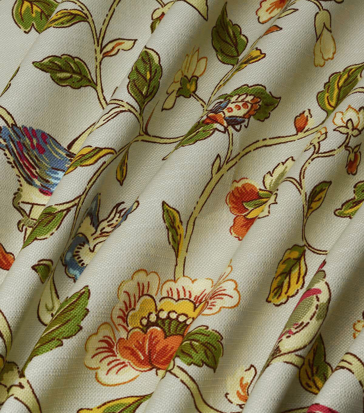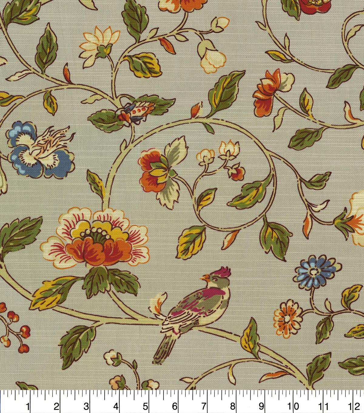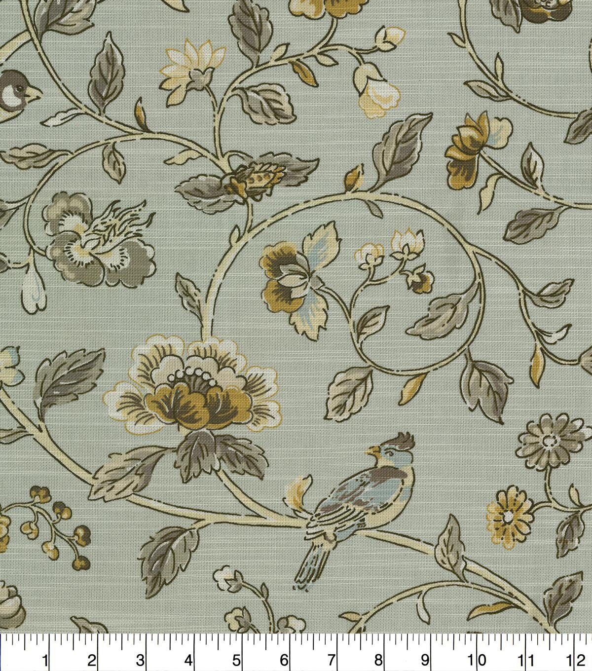 Waverly Summer Isles is sourced from an 18th century document, Summer Isles features a scene of floarl serenity defined with thin outlines. Vines meander and curve as birds perform their sones atop their perches. The soft owrkable fell and stability makes for perfect window treatments, throw pillows, chair pads, cushions, and almost any craft project.